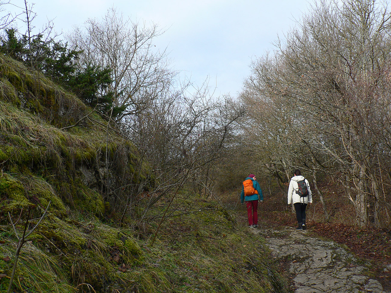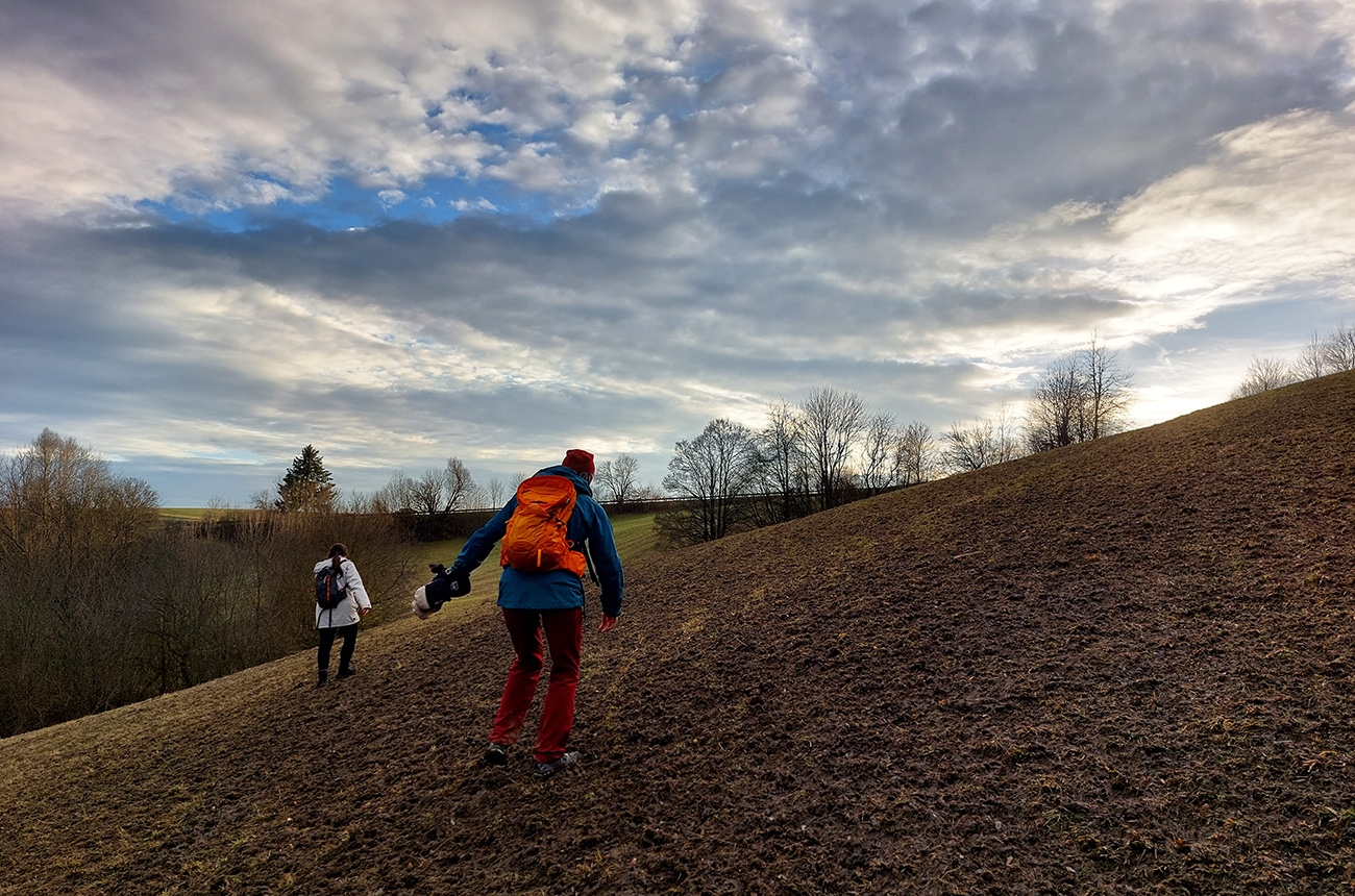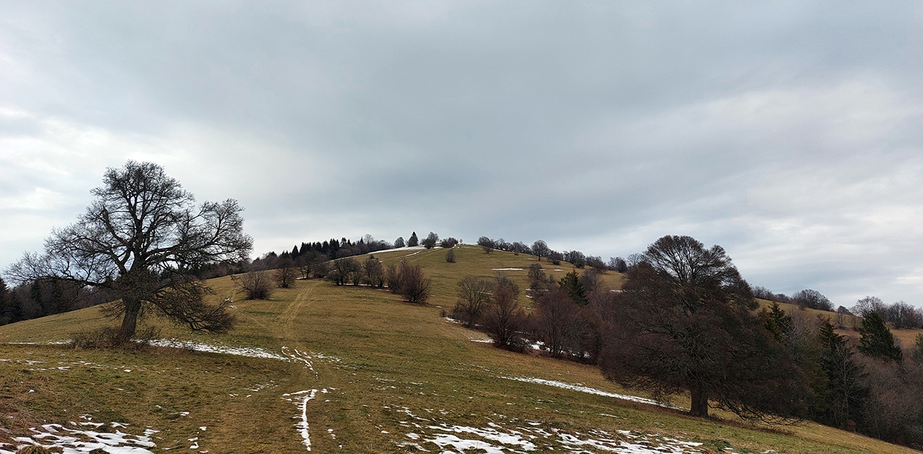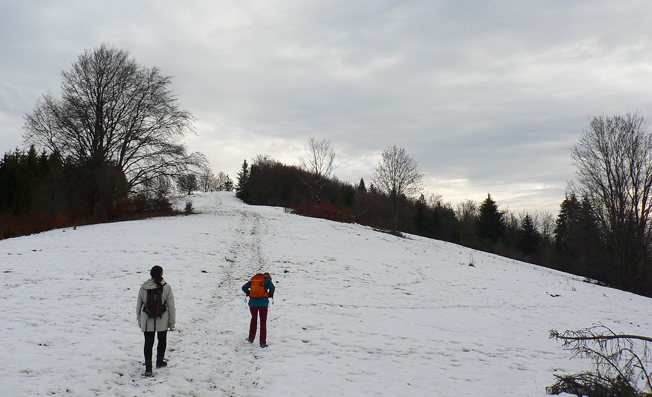 Z lúk sme sa ponorili do lesa a z lesa sme sa vynorili pri kameňolome. Čiže záver menej pekný pre oči, lebo samozrejme do kríkov popri ceste miestni vypatlanci vyvážajú odpad. A ešte sranda obrovská nastala po prechode záhradkárskou osadou, keď sme sa hore lúkou potrebovali dostať nazad k autu – miestne kosačky aj koncom roka tade chodia do práce, takže blatové závažia sme mali na topánkach už po pár metroch. Ale inak super bolo, fajná prechádzka je to, asi na päť hodín, dobrá aj na krátke zimné dni.