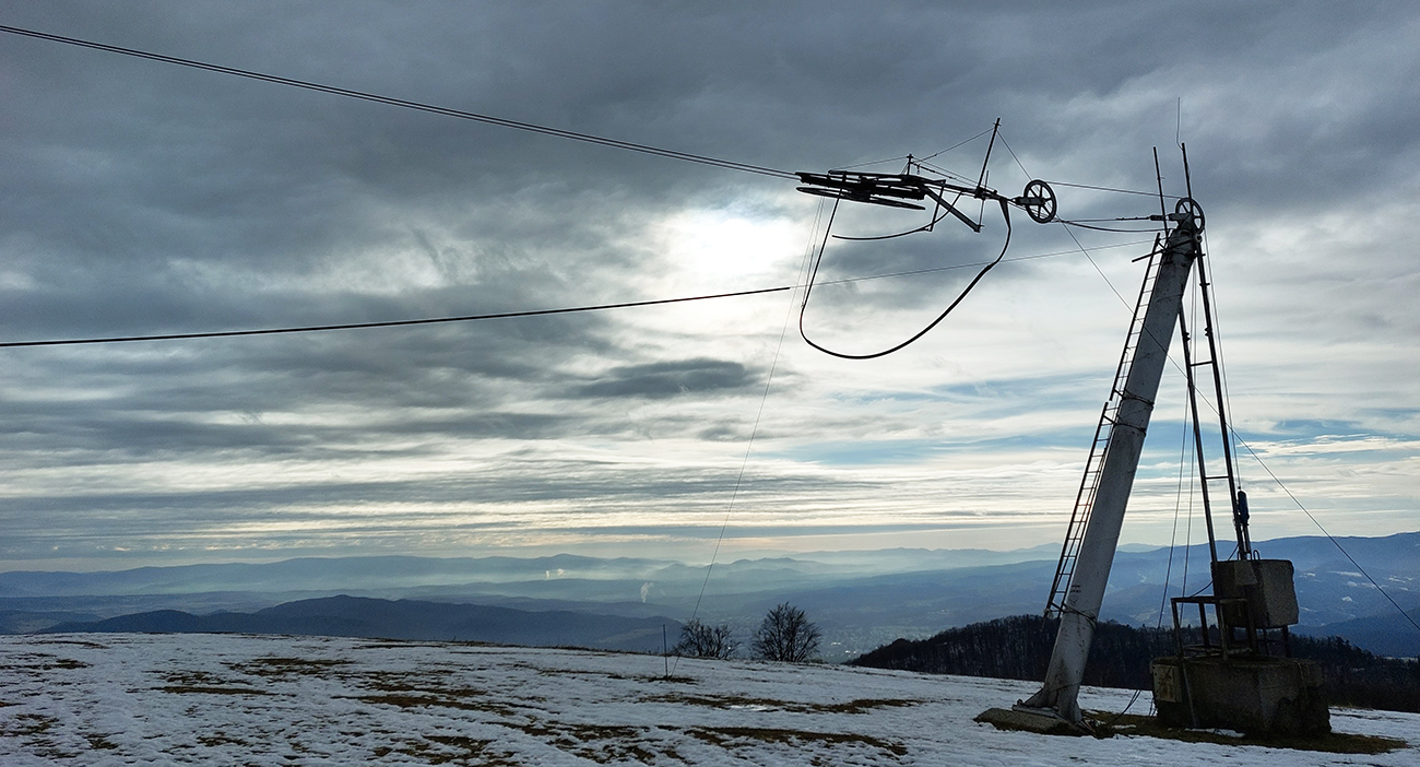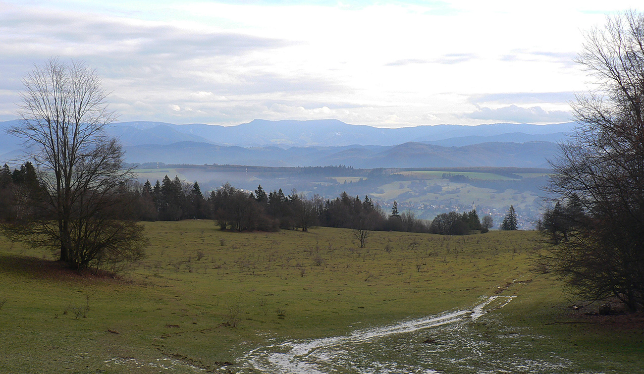Neostávalo nám už nič iné, len zvoliť si zostupovú trasu. Viac doľava by nás žltá doviedla k hornej stanici vleku v malom stredisku Čachovo nad Selcami. My sme to ale ťahali čo najviac doprava, ponad Nemčiansku dolinu. Priamo pod nami Bystrica a pred ňou aj lúka, po ktorej sme začínali stúpať od auta.