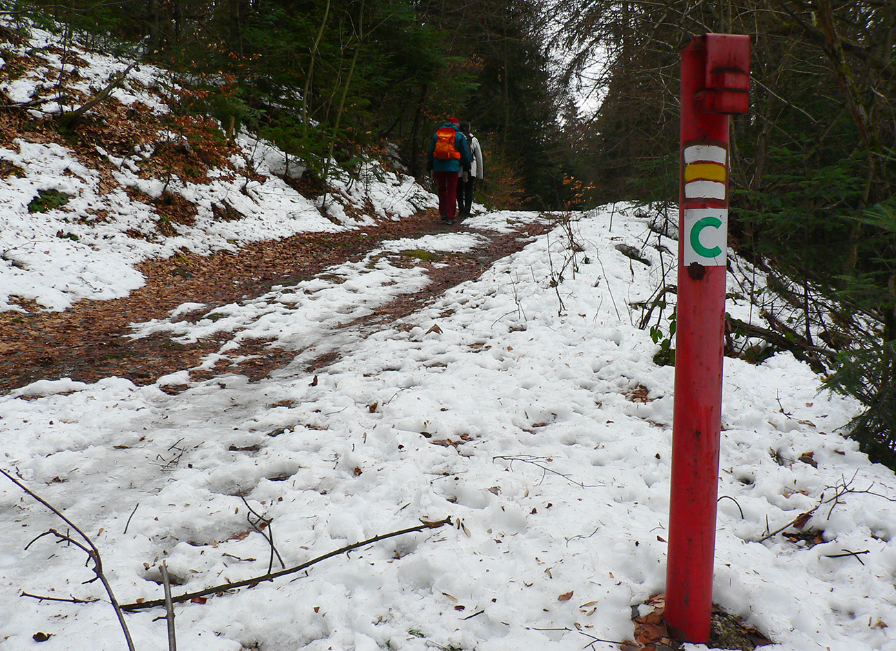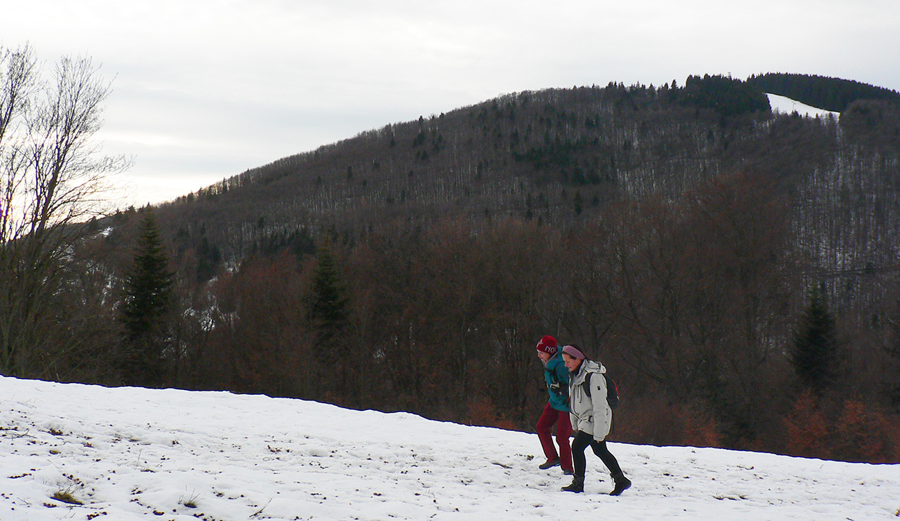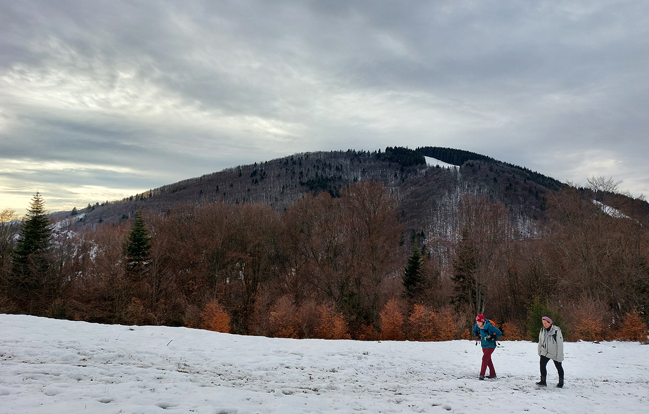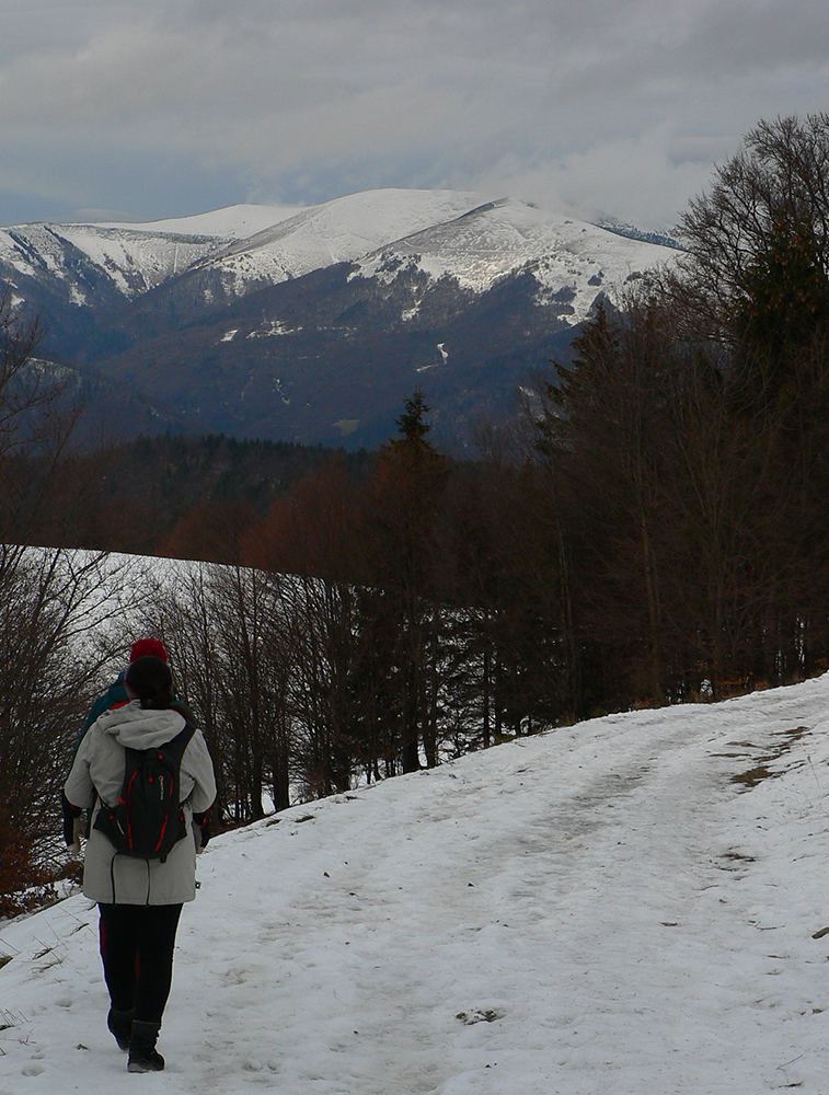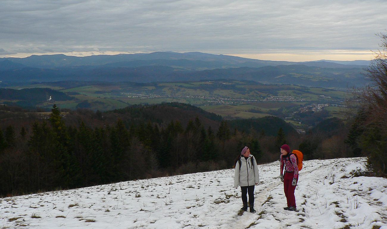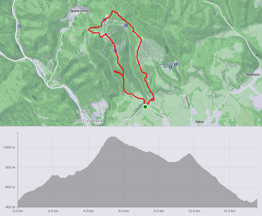 Rýchlo sme opustili rušné stredisko a po chvíli klesania po širokej asfaltke sme bez problémov odbočili na lesnú cestu, smerujúcu na vrchol Selčianskeho dielu. Trochu menej zaujímavý úsek vychádzky, hospodárskym lesom. Výhľady na východ k Nízkym Tatrám.