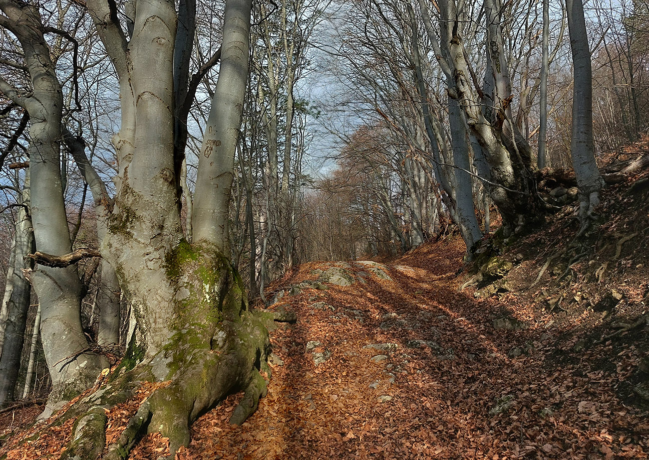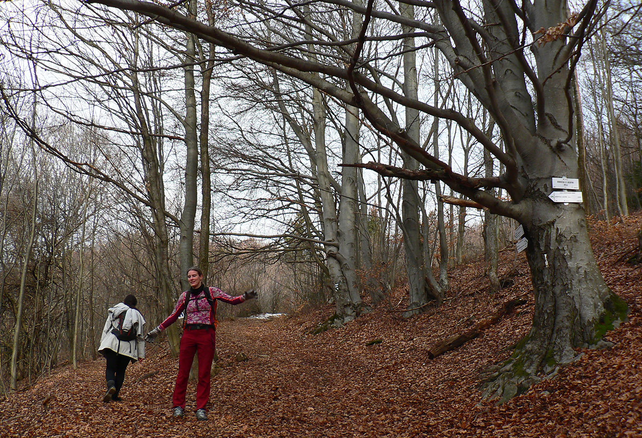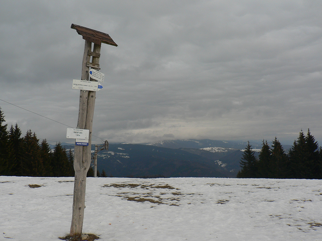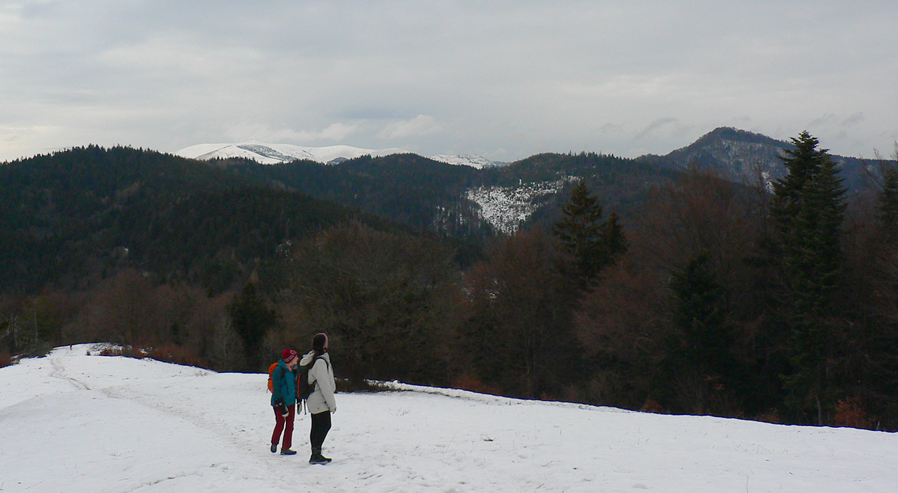 Rýchlo sme opustili rušné stredisko a po chvíli klesania po širokej asfaltke sme bez problémov odbočili na lesnú cestu, smerujúcu na vrchol Selčianskeho dielu. Trochu menej zaujímavý úsek vychádzky, hospodárskym lesom. Výhľady na východ k Nízkym Tatrám.