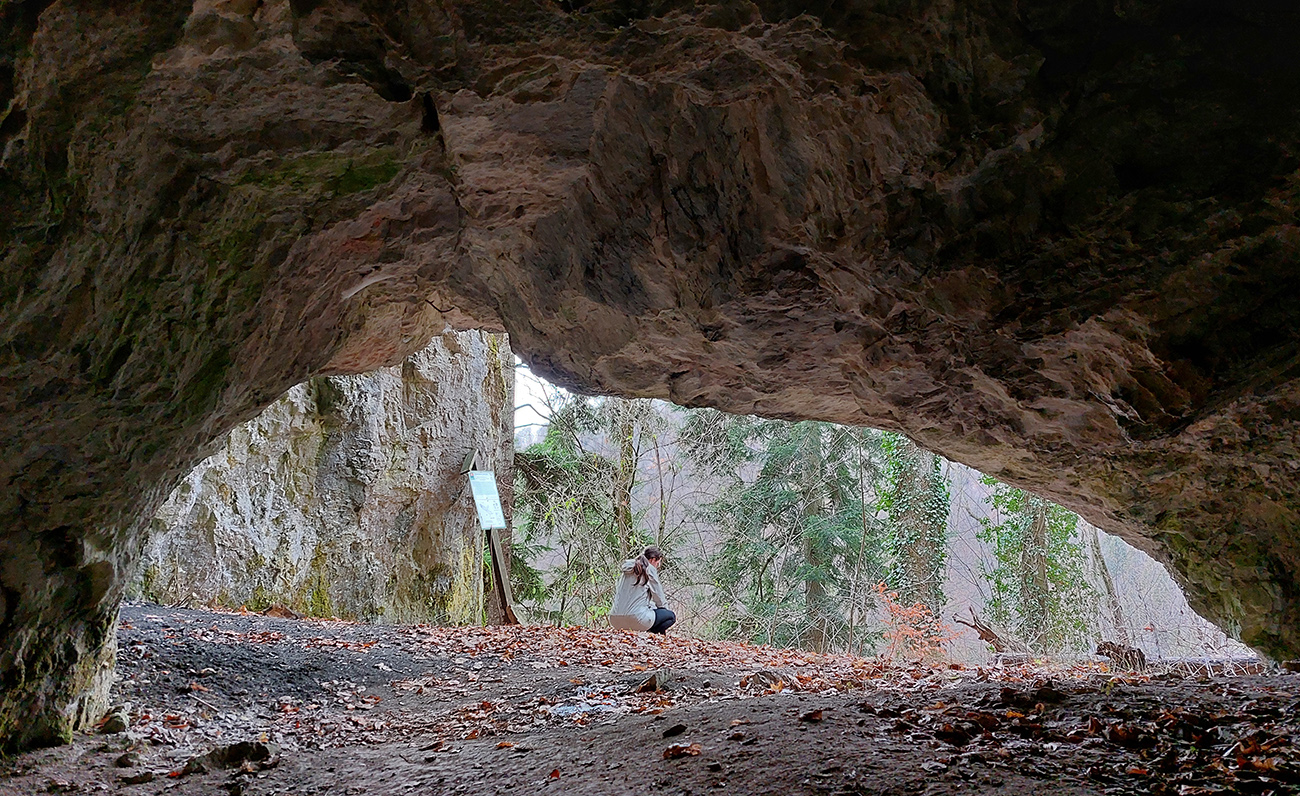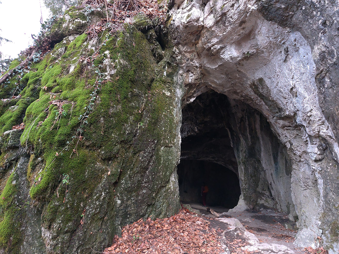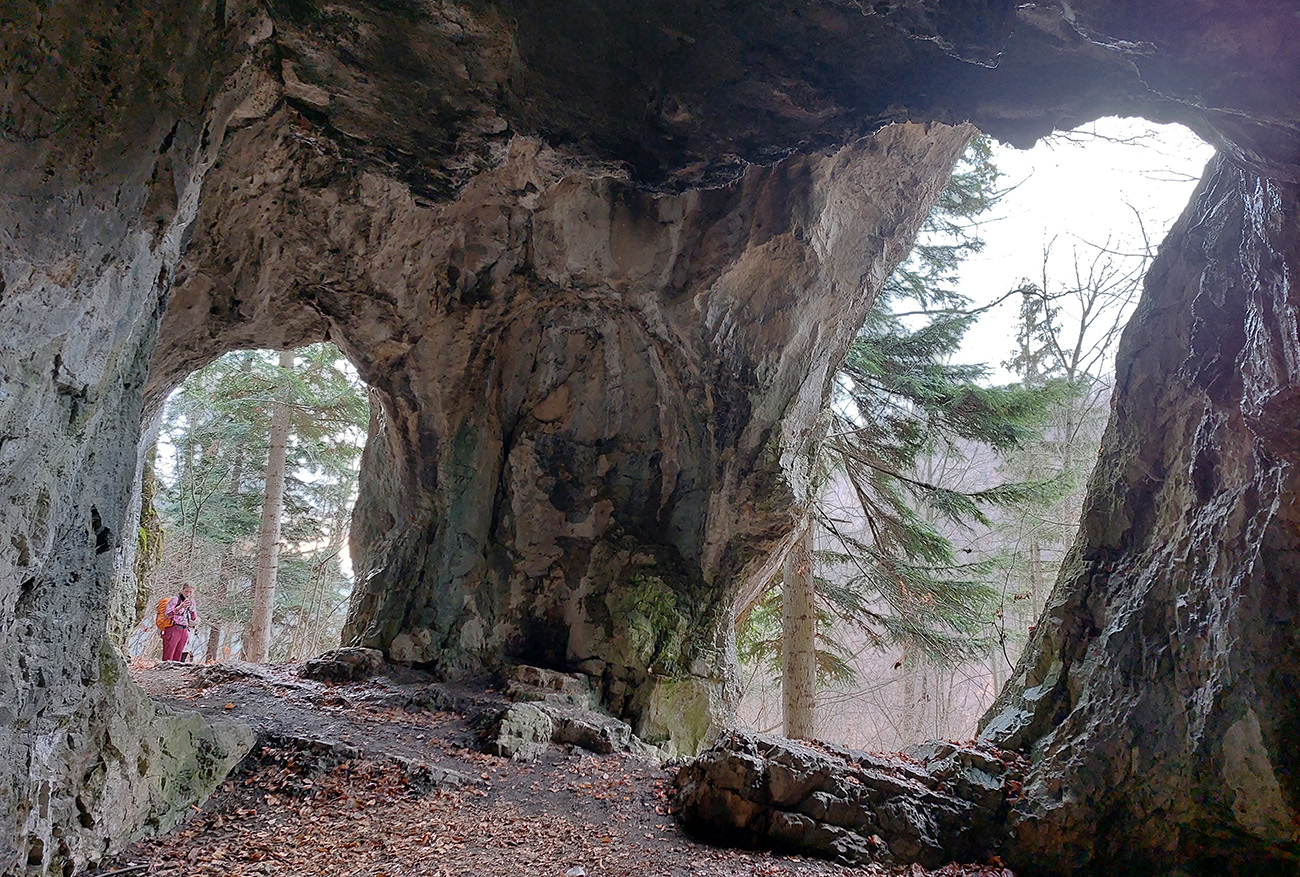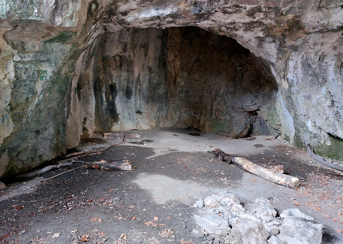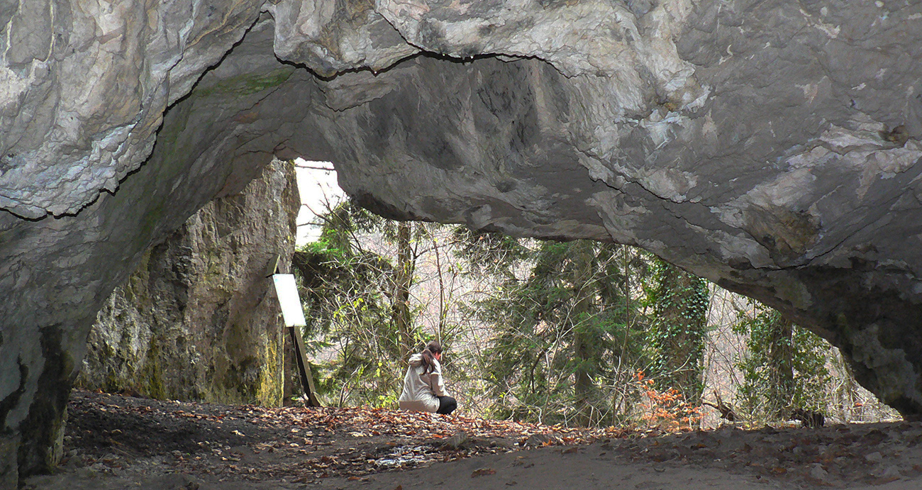 Na úvod teda neznačená, ale jasná cesta krovinami a potom prechod lúkami - už z nich sú pekné výhľady, aj hore na Selčiansky diel. Strmšie stúpanie začína so vstupom do lesa, ale po fajnom, širokom chodníku a dá sa trochu odľahčiť odbočkou do traverzu, k jaskyniam Kaplnka a Netopieria. Smerovka na odbočke síce hovorí o polhodine, ale to je nezmysel, o 10 minút ste v jaskyni.