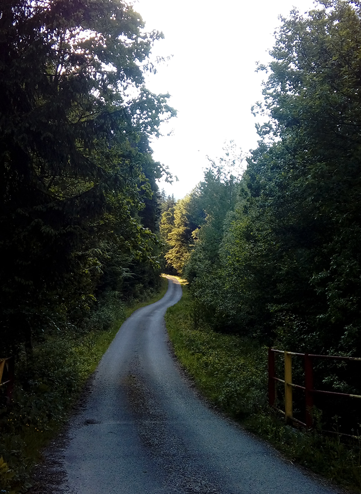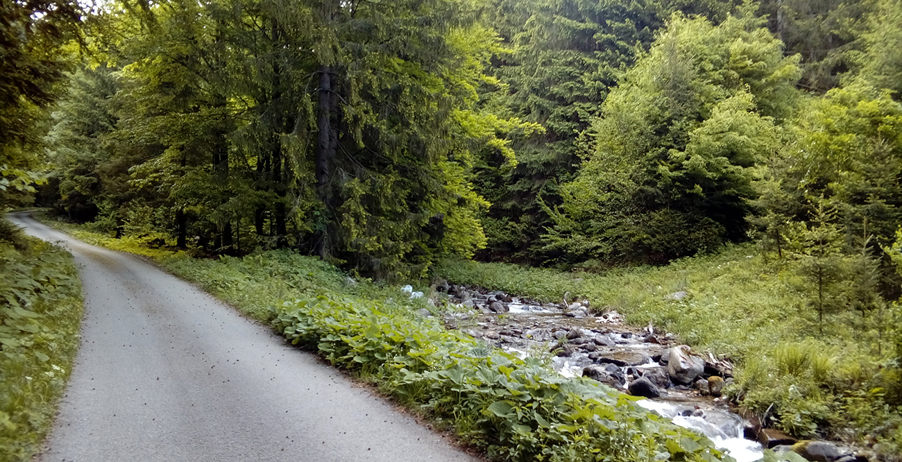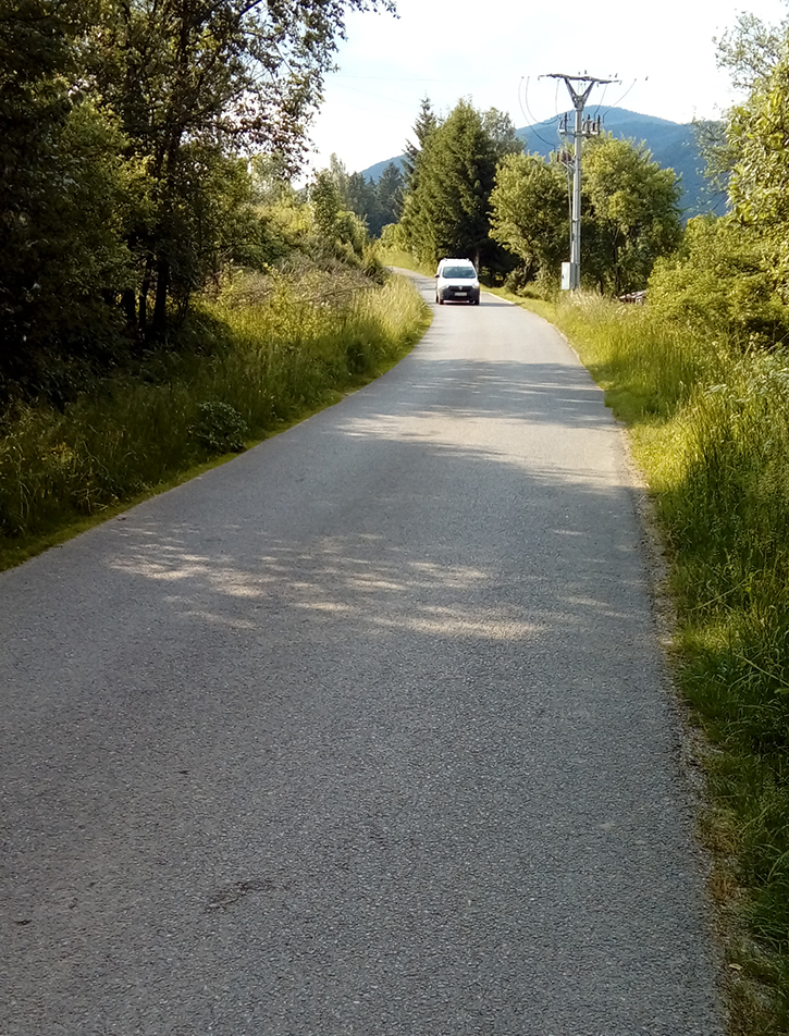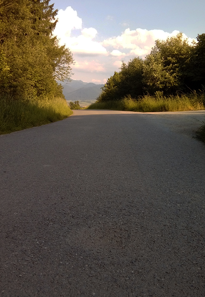 Najlepšie je asi začať od Váhu, teda z mosta nad ním. To je stále do kopca a najmä takmer bez áut. Kto by chcel ešte pár výškových nahonobiť, pôjde ako ja od začiatku modrej značky, priamo z city od kostola. Výhodu to má ešte jednu, že sa tam človek po výkone môže rovno odmeniť jedným oroseným, na terase pod slnečníkom. Lebo toto stúpanie je úplne geniálne počas horúcich letných dní, keď sa „asfalt topí“. Takmer osem kilákov, prevažne v tieni lesa, popri potoku. Mňam. Dole príjemný sklon, v strede sa trošku pritvrdí a posledných asi 700 m už taká lámavica. Asfalt končí na križovatke zvážnic, kde pretína "mtb traverz Krivánskej Fatry"