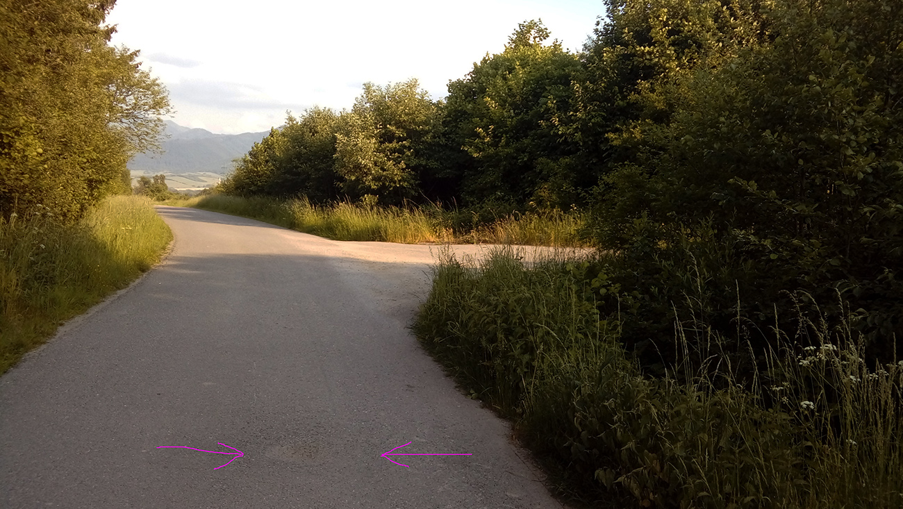V oboch prípadoch len úplne hore je cesta trochu zahádzaná hlinou po ťažbe, inak sa dole fičí bezpečne. Už sa síce asfalt na niektorých tienistejších miestach vplyvom mrazov trochu mrví, no stále je to vysoký nadštandard - aj v porovnaní s normálnymi cestami. Len dve zákernosti sú cestou dole. Také lavóriky, kde sa podložie prepadlo a asfalt sa len prehol. Ale just na pravej strane cesty - dosť na veľký problém vo veľkej rýchlosti. Prvý lavór je hneď hore a dobre ho vidno, lebo voda doň splachuje bordel. Ale druhý je až dole pri farme, kde cesta vychádza na lúky a je takmer neviditeľný, lebo na úplne čistej ceste - pozor naň!