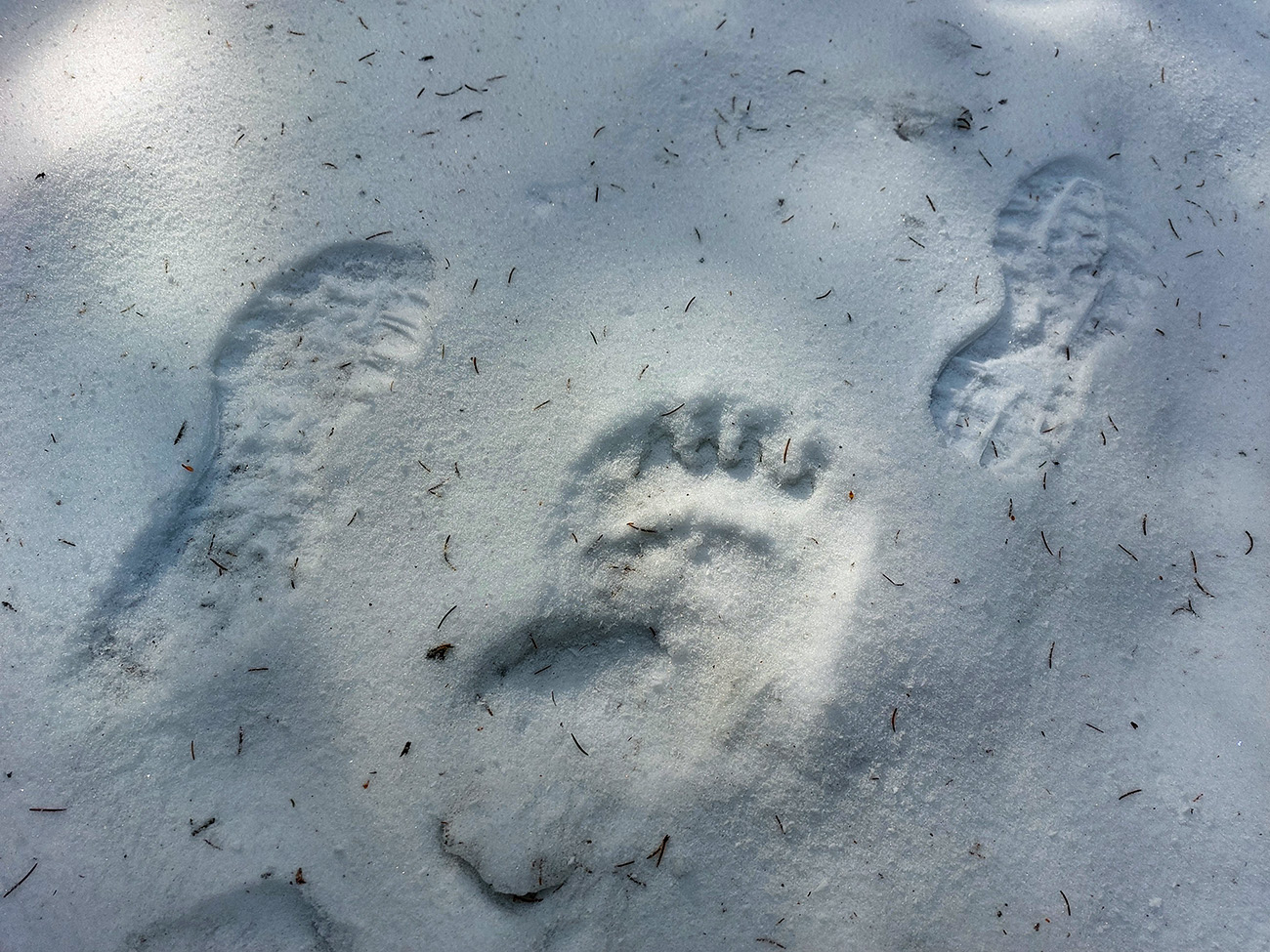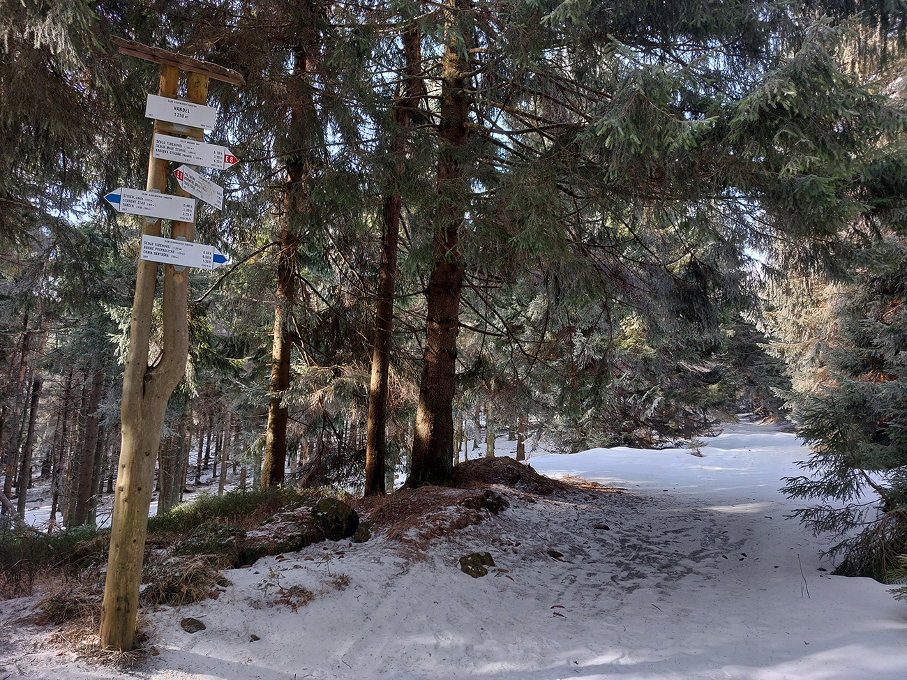 Potom cez vrchol, sedlo Flochovej a Handel už po pomerne hrubej vrstve snehu, poriadne premrznutej, takže bez zabárania (ale aj chodník samozrejme predupaný), a na ceste v južnom traverze vrcholu (popri bivakovej búde) sneh už takmer nie je.
