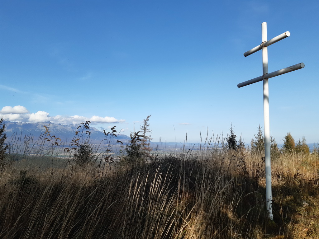 Z lesnej cesty po 100 metroch odbočka prudko vľavo a potom už rýgolom strmo hore až na hrebeň. Po ňom už mierne zvlneným terénom až na vrchol s bielym dvojkrížom. Vďaka odlesneniu máme parádne výhľady. Celkový dojem z tejto vychádzky výrazne umocňujú neustále výhľady na Tatry a okolie.