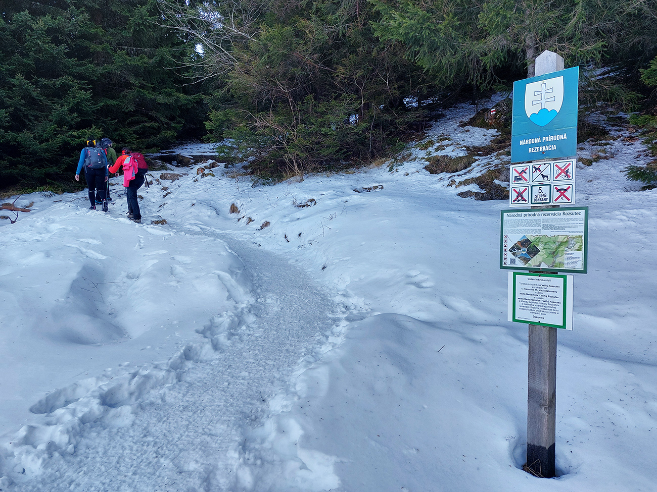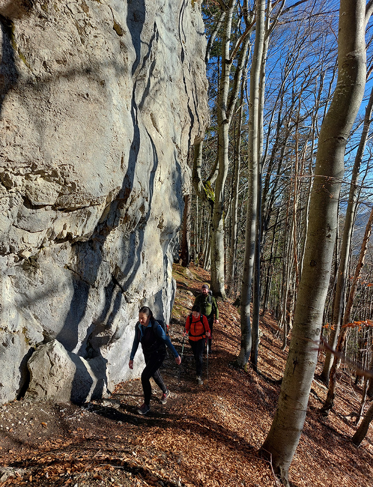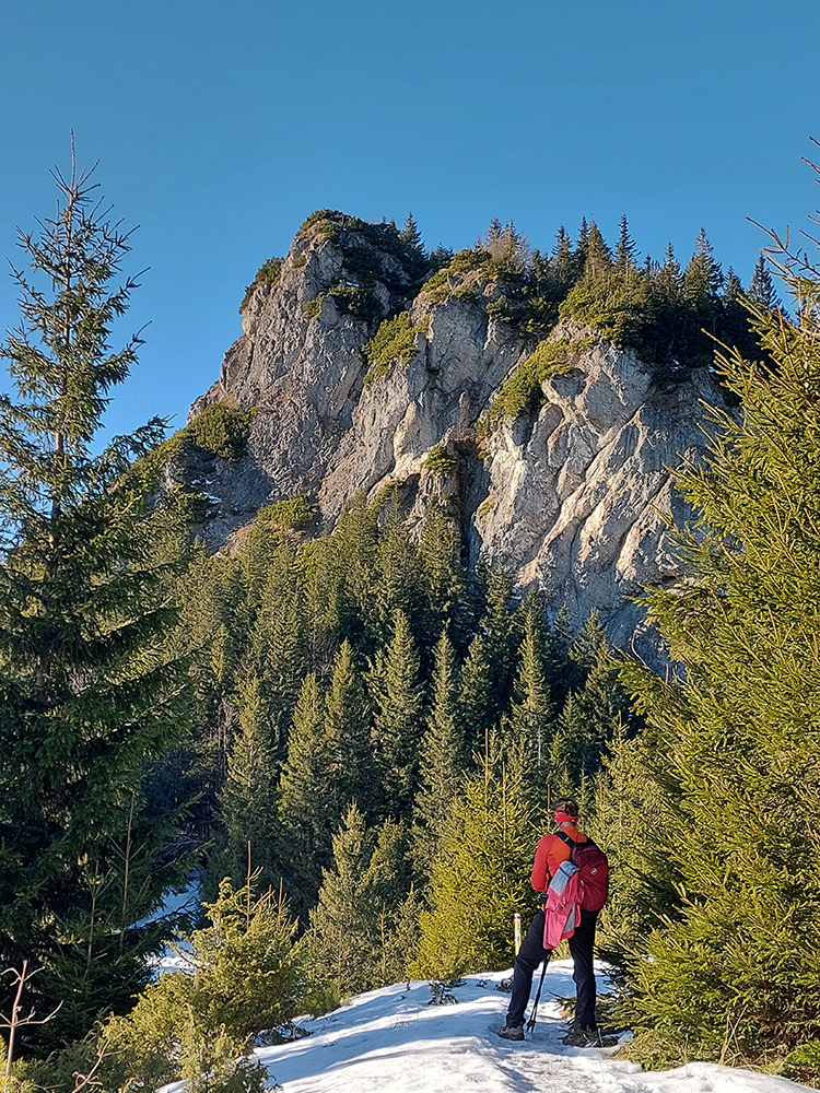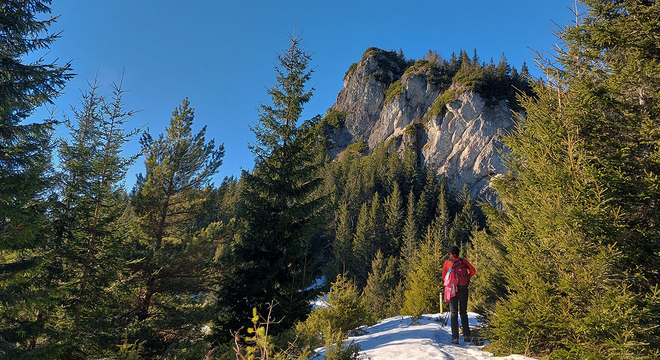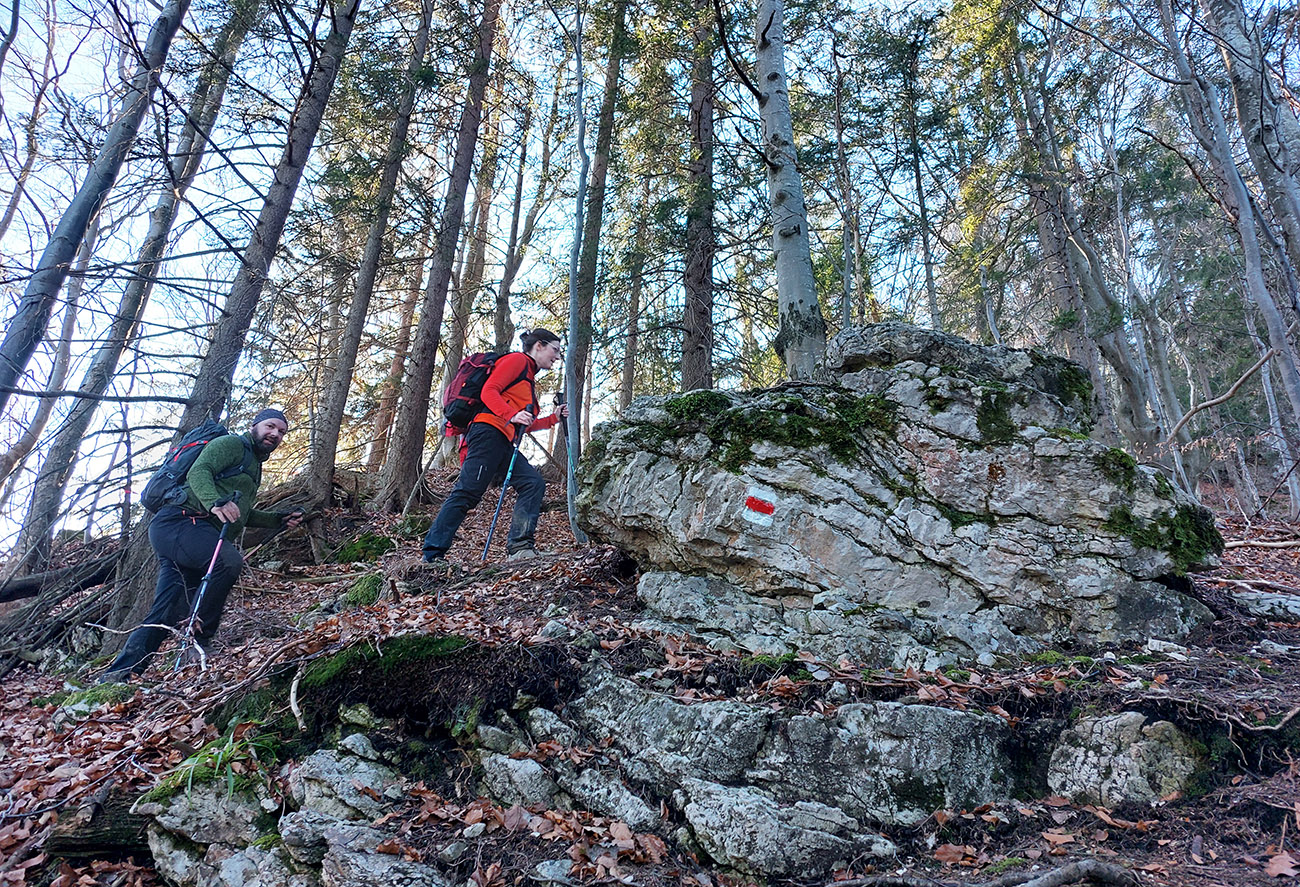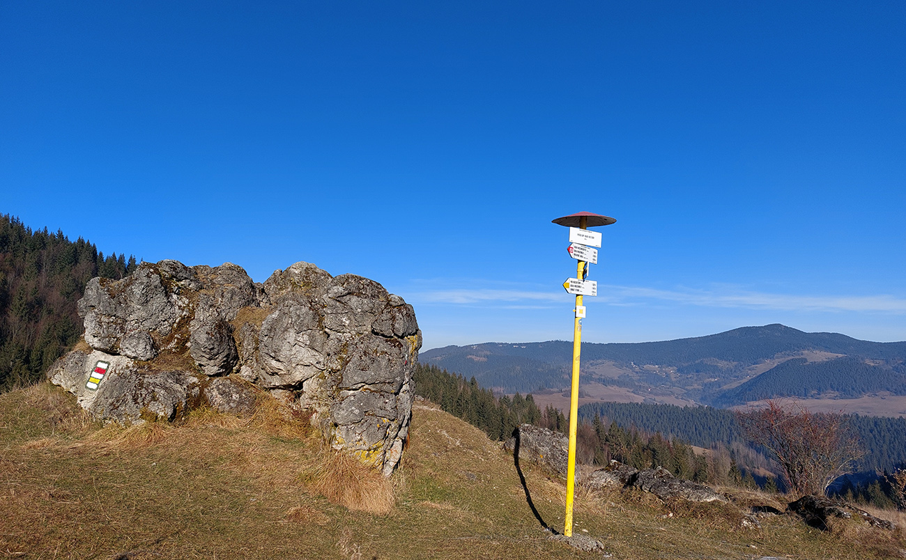 Strmina hore lesom pod Malý Rozsutec je spestrená početnými skalnými vežami a bralami – ale najmä niekoľkými vyhliadkovými plošinkami pre upokojenie pľúc a potechu očí. K Veľkému Rozsutcu sa stále odvážnejšie pridáva Stoh a na východe nesmelo vystrkuje svoj nos Choč. Svieti aj guľa meteoradaru na Kubínke: