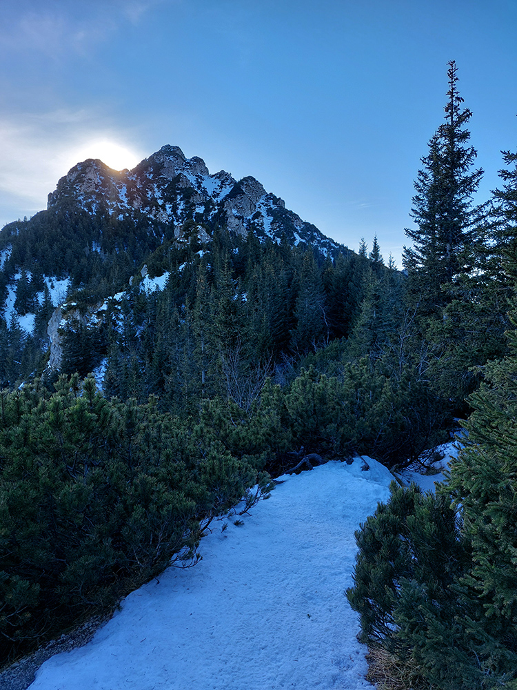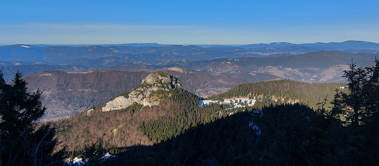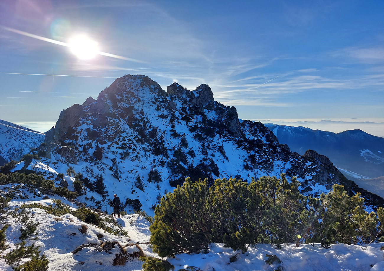 Malý Rozsutec nasvietený a výstupová stena suchá, ide sa hore, keď už sme tu. Samozrejme v tieňoch aj ľady pod nohami, ale dalo sa aj bez mňaukania. Skôr zubami poriadne škrípali tí, ktorí mačky vytiahli vyvenčiť sa. Dokonalú vrcholovú panorámu netreba predstavovať, akurát hlavný cieľ dňa sme mali priamo v protislnku.