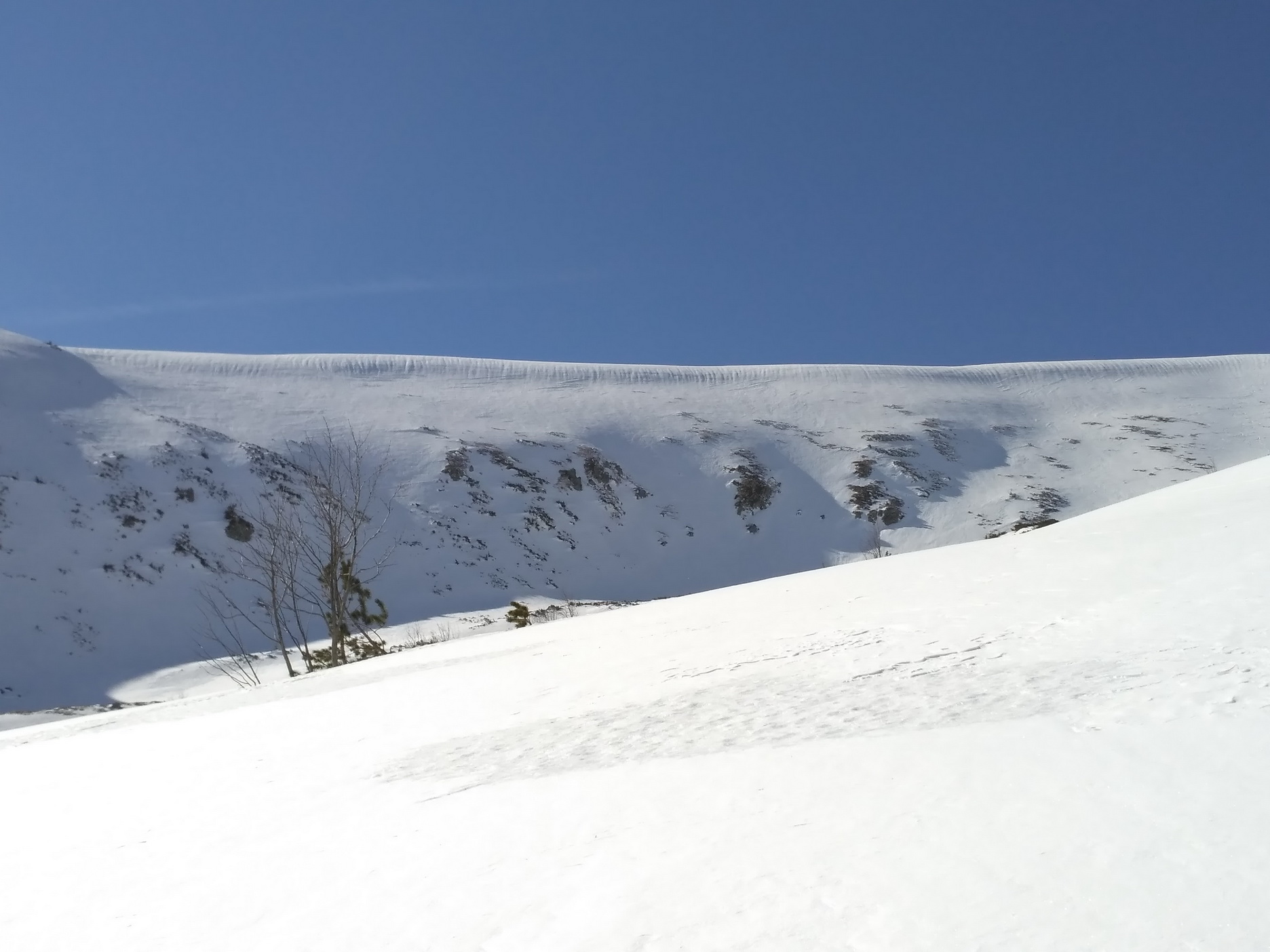 Som na vrchole znova udivený ďalším špecifikom Skalky - priestrannosťou. Len ťažko na Slovensku nájdete prírodné futbalové ihrisko vo výške 2000 metrov. Napriek rozložitému vrcholu však Skalka rozhodne nie je jednotvárna "buchta" a hlavne jej divoké severovýchodné úbočie ponúka viaceré línie na hranici extrémov. Do jednej z nich už dlhšie zvedavo nazerám, zatiaľ však nemám šťastie trafiť ju v podmienkach.