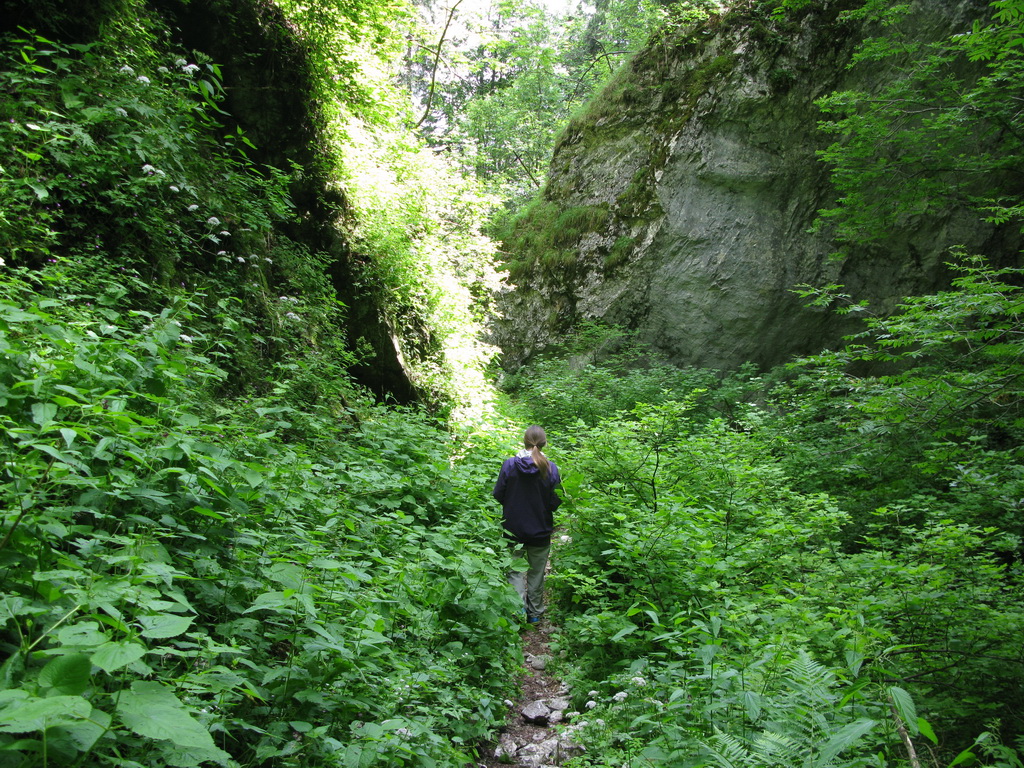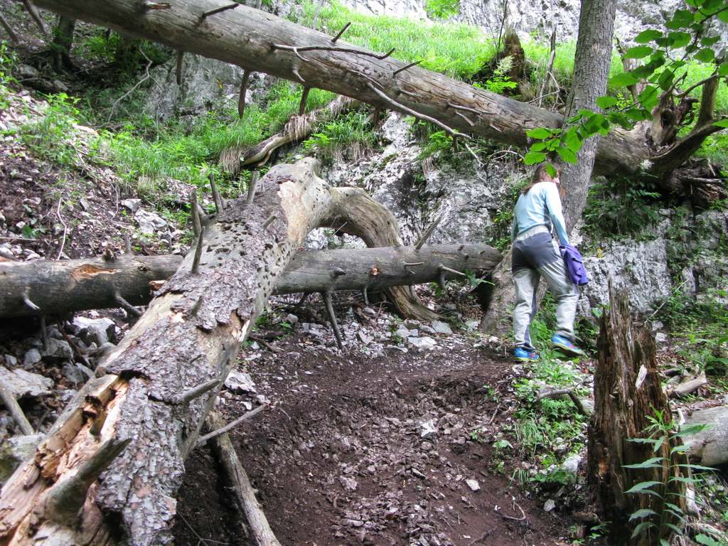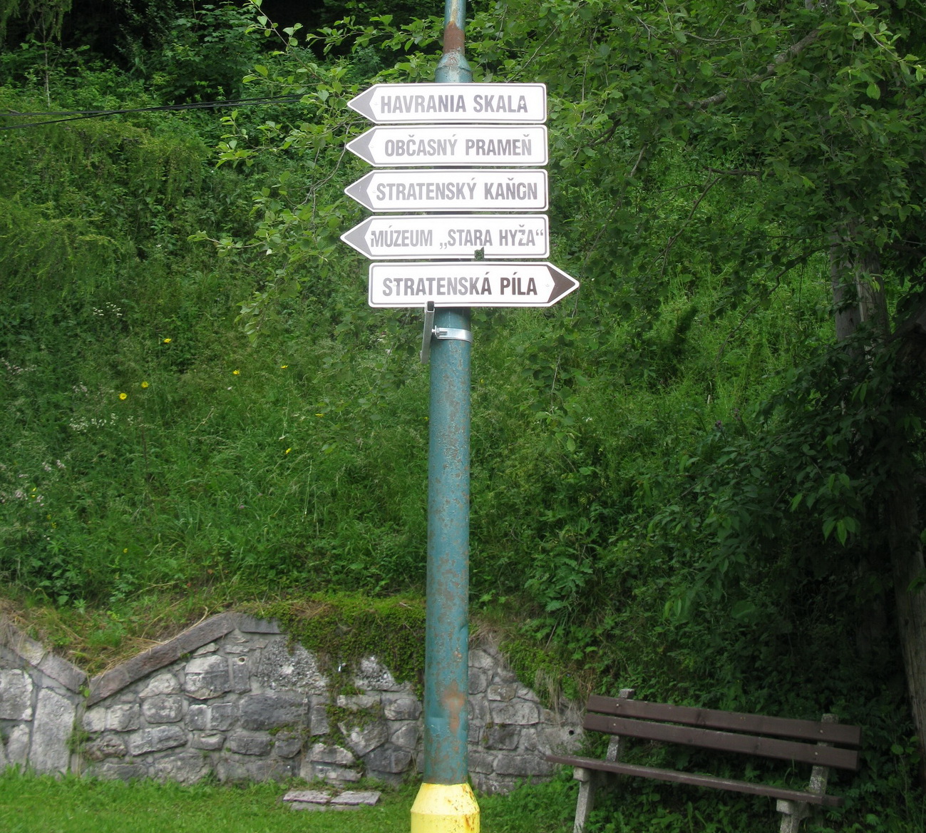 Parkujeme v obci Stratená (800m), kde panuje ešte pred hlavnou letnou sezónou veľký kľud. Priamo z obce popri kostole vyráža do kaňonu pod Sokolími skalami zelená značka. Prechádzame popri cintoríne a vnárame sa do lesa. V kaňone ostro stúpame a prechádzame popri malých jaskynkách, a dokonca sme našli aj skalné okno.