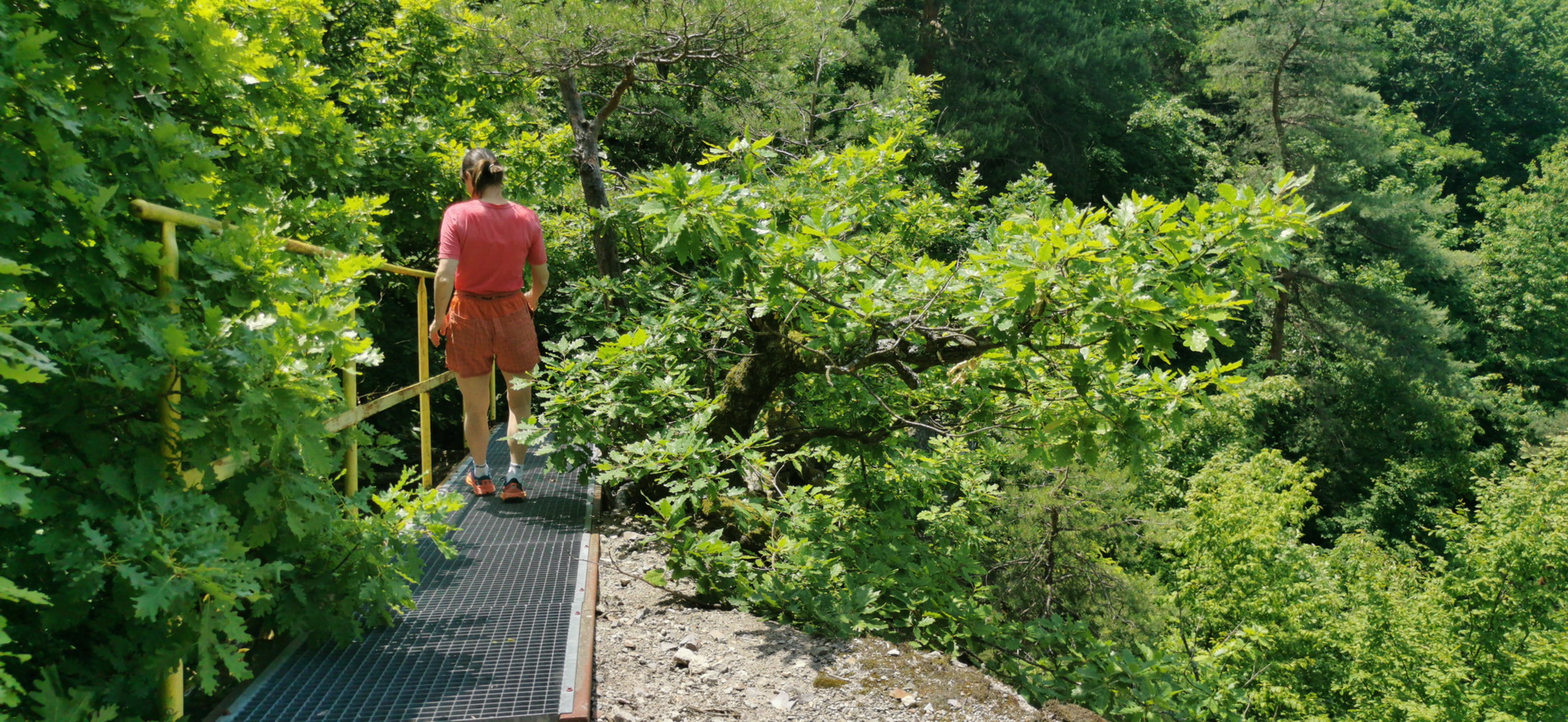 Na začiatku túry sme mali obavy z horúčavy. Hustý les, ale hlavne špecialita tejto lokality: prúdenie chladného vzduchu z jaskýň a skalných trhlín nás ale kvalitne osviežila a pomohla nám prežiť. Nebola to ale jediná zaujímavosť tejto oblasti, ktorou nás previedol okruh po zelenom náučnom chodníku.