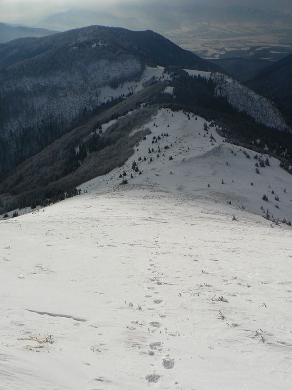 Hrebeň Krivánskej Fatry nie je väčšinou to pravé orechové pre pásy, ale skúsiť treba. Mal som zámer skúsiť nie veľmi používaný nástup po zelenej z Kraľovian na Stoh a potom prejsť až na Kľačiansku Maguru. Voľajako to ale nevyšlo: taký deň – blbec, aký sa občas pritrafí a čo sa môže, to sa kazí. Ten nástup z Kraľovian mal jednu veľkú výhodu – do lyží som sa obul doslova na stanici, ako som z vlaku vyskočil. Až pod Suchý vrch vedie značka širokou, aj keď strmou lesnou cestou. Smerom dolu by sa tade dalo pekne lyžovať, až na pár úsekov, keď je cesta v úzkom koryte. Potom na vydýchanie traverz po východnom svahu Suchého vrchu, vynorenie na lúke pod Žobrákom a prvé výhľady na hrebeň, super. Ale tam to začalo.