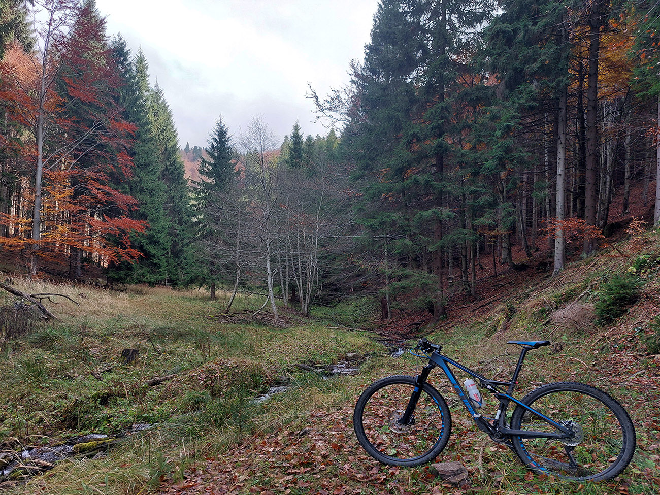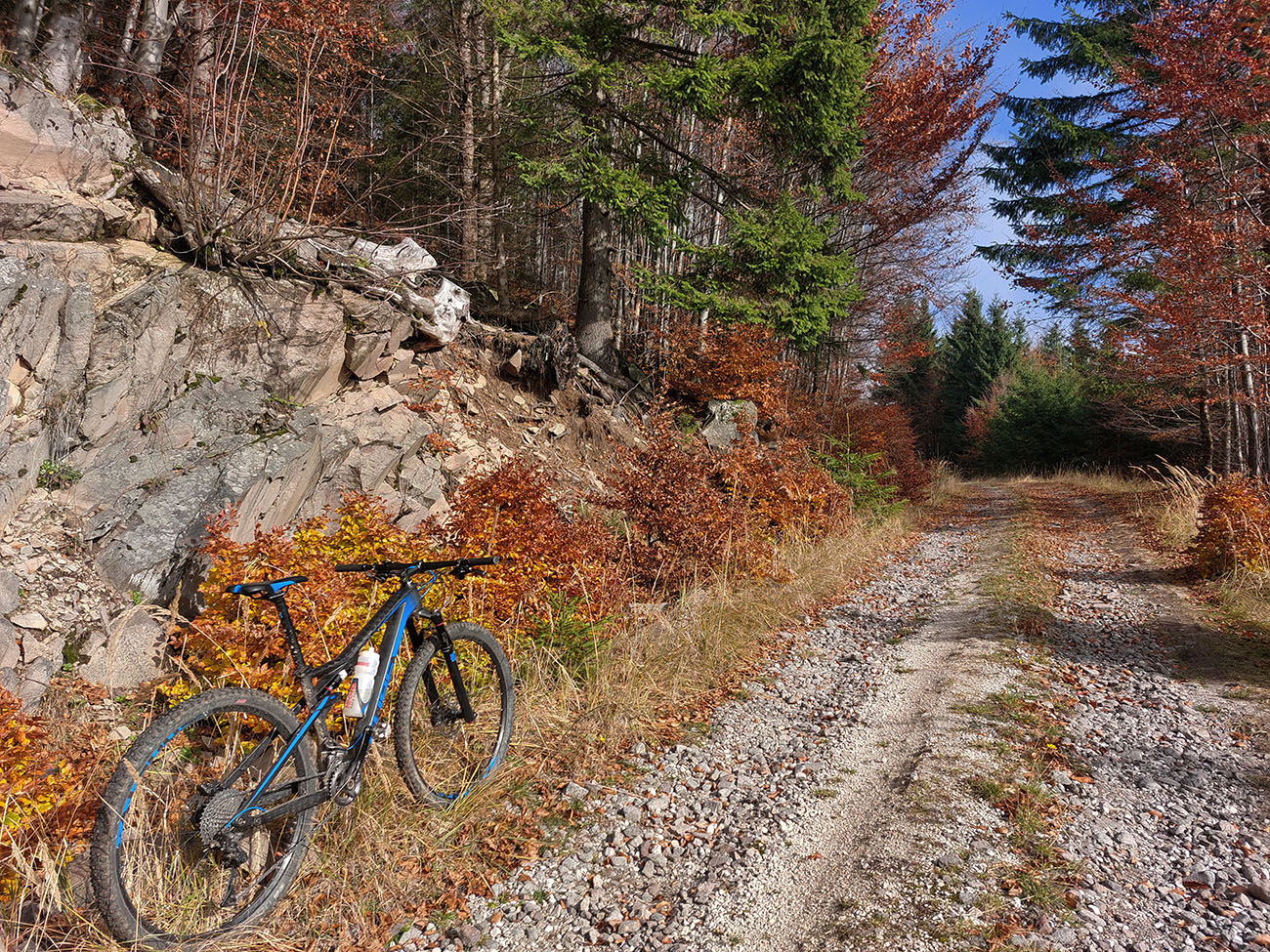 Hneď po vjazde do lesa prvá strada bianca, až po napojenie na asfaltku hore Dolinou Čiernej vody. Pohodofka v miernych sklonoch, blata skoro nič, a ešte občas aj slnko začarovalo farbami. Pomaly som sa posúval na východ za prašťania šotoliny a občasného šuchotu lístia.