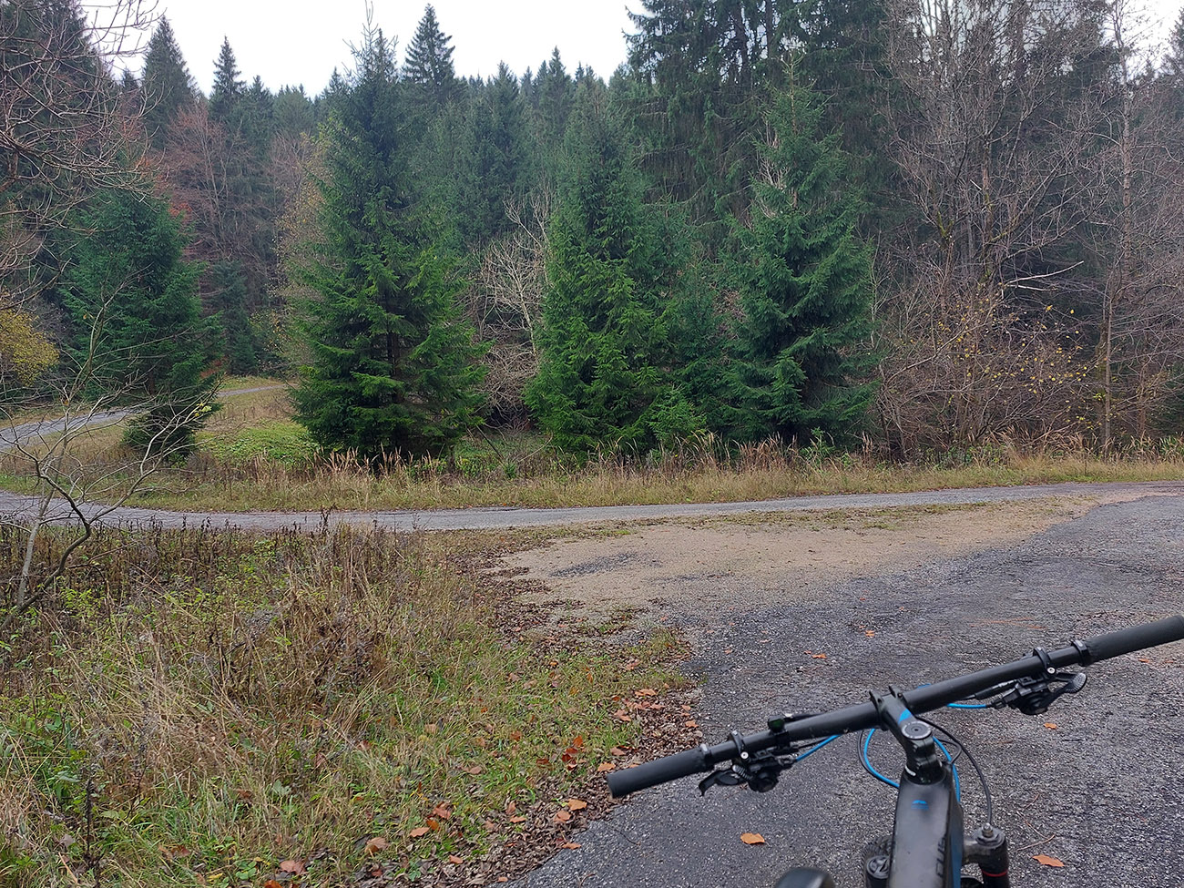 Až do konca to potom boli už len pevné cesty s dominanciou asfaltov, ale kadejakej hrboľatej kvality. Niekde až „bianche“, aký je tam asfalt od staroby vyblednutý. Takže bacha, aspoň gravel je tam treba. Ale ozajstné, pod kolesami praskajúce strade bianche sa aj tu našli. V podstate modrá a potom červená cyklotrasa až do Štubne, so skúpymi výhľadmi cez rúbaniská doľava – najskôr na vodárenskú nádrž, potom na kotlinu okolo Skleného a štubnianskej železničnej stanice. Taká pohodová cykloturistika.