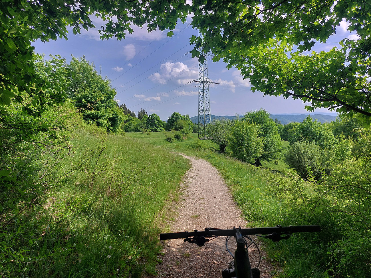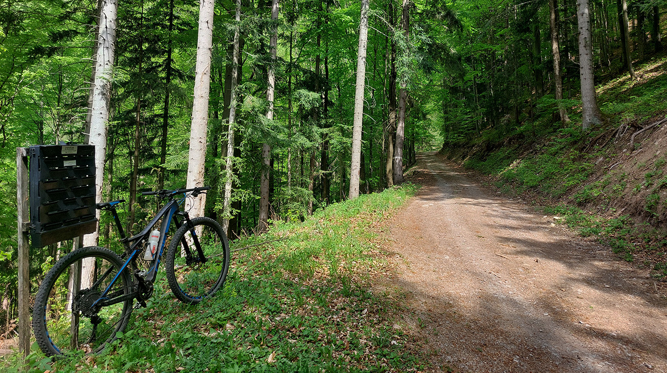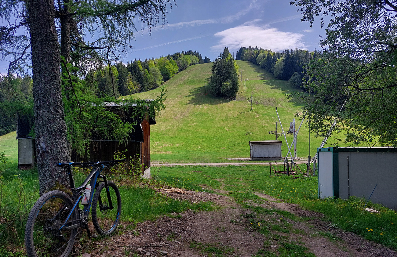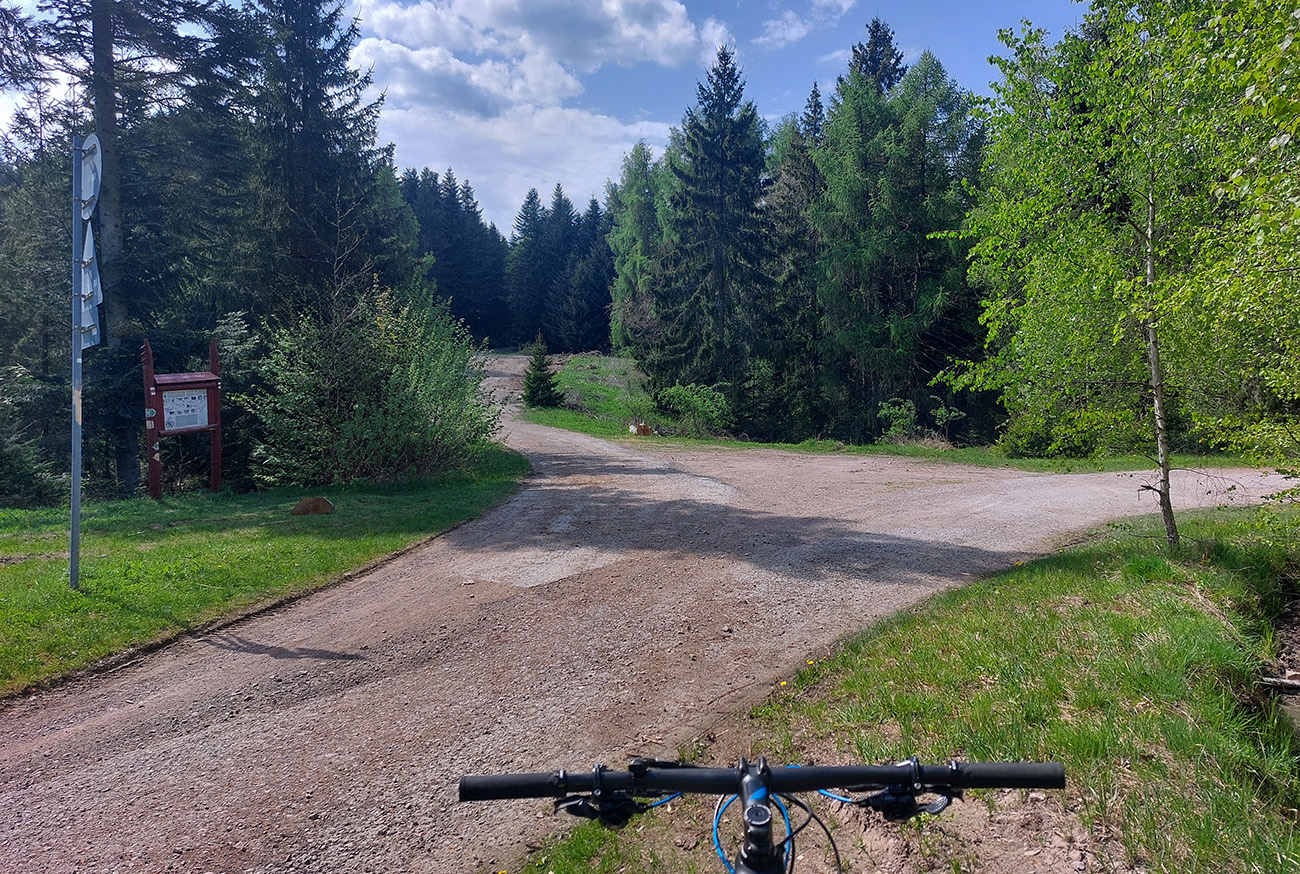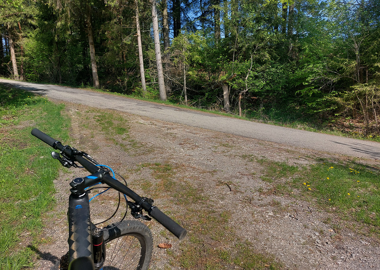 Hore na Krížnu je to už iná stena – a ešte vyerodovaná, aj keď stôp vyjazdených je tu dosť. Po úvodnej strminke za hotelom som preventívne dotankoval v napájadlách, zahryzol sa do riadidiel, zaradil „vyprošťovák“ a davááj hore. Ale nohy ešte silné a stúpanie je tu našťastie prerušované, s rovinkami na predýchanie. Vietor parádny, výhľady ešte lepšie, veď ako na holiach. Len tá technika pomalej jazdy cez šutre nič moc, trochu aj drina miestami.