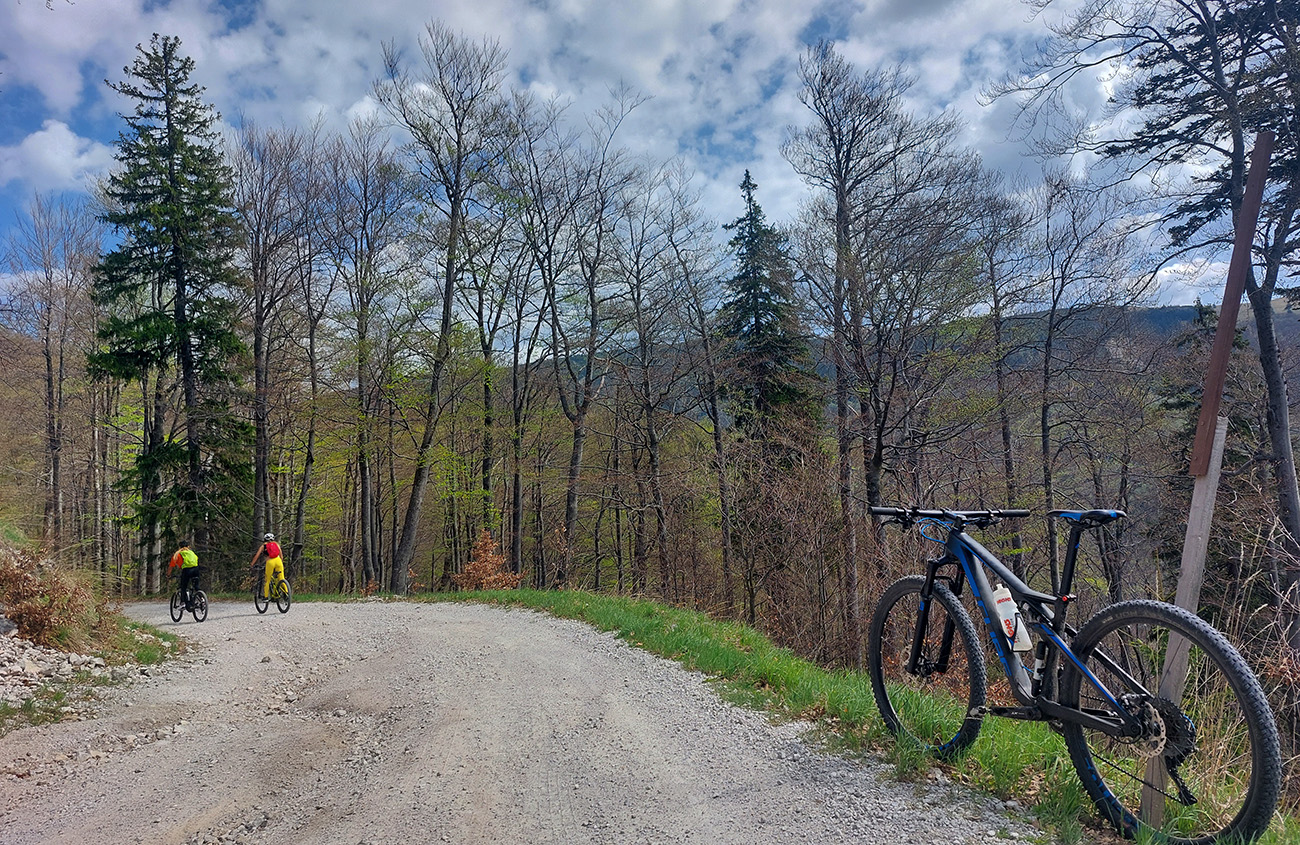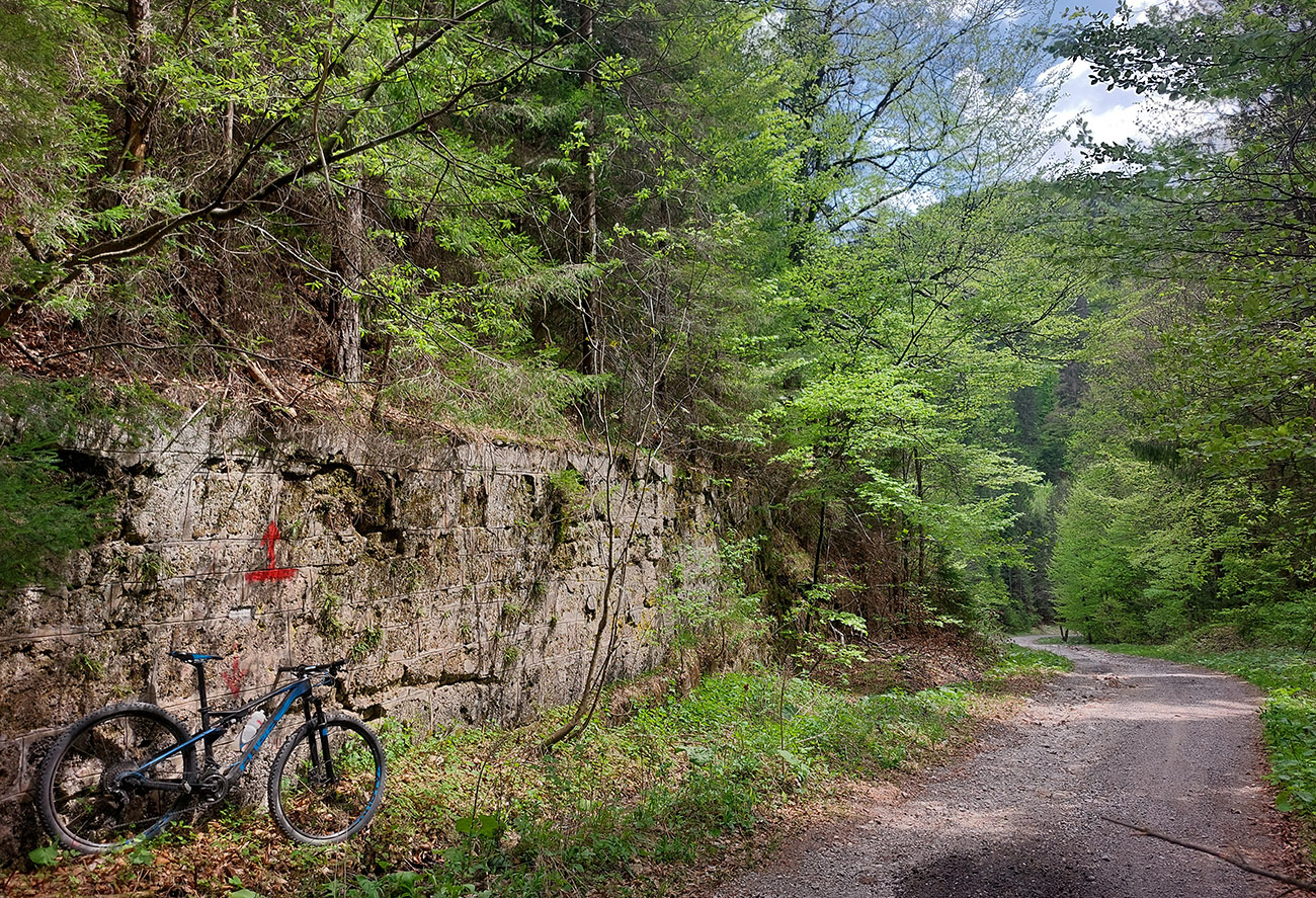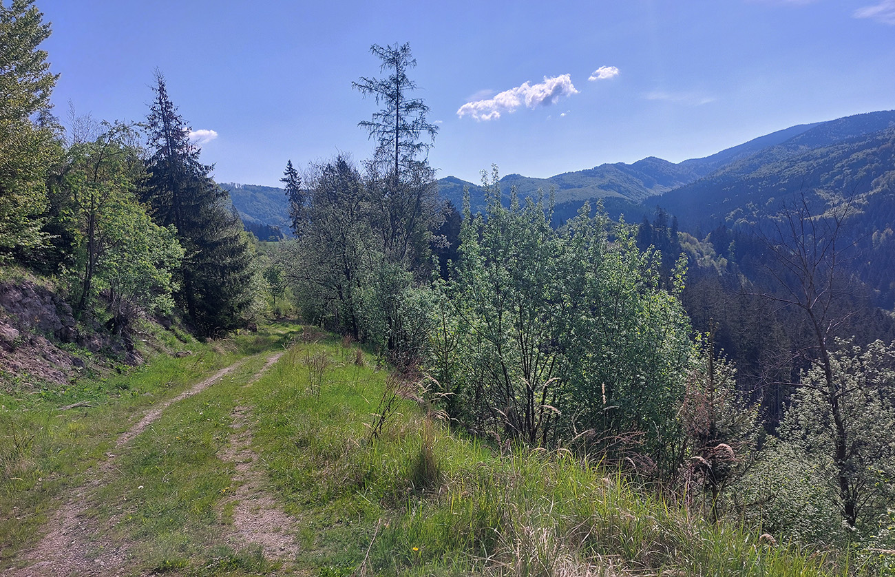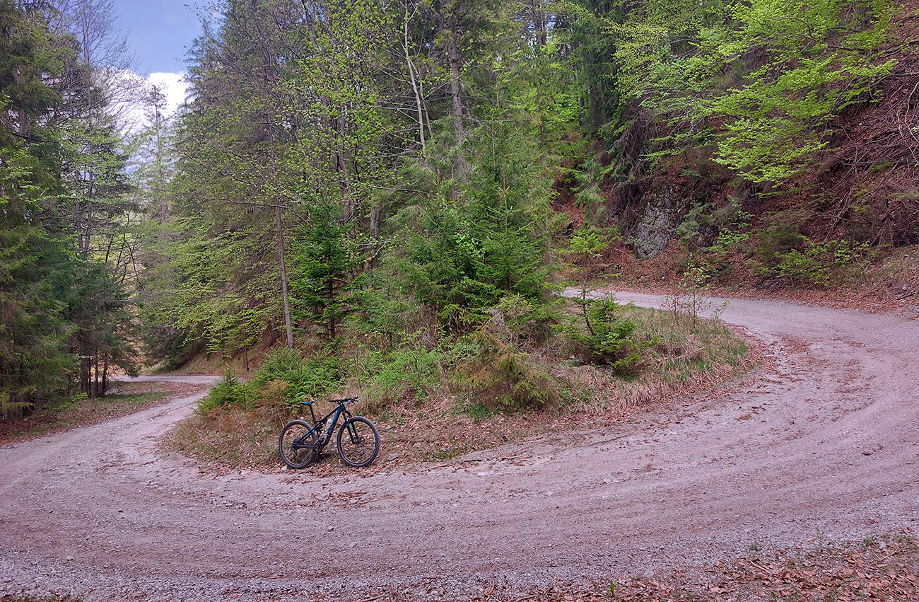 Traverz do Prašnického sedla a zjazd dole do Suchej doliny (asi šesť kilákov) už za odmenu boli – krásna, hladká šotolina, príjemne praskajúca pod kolesami. Okolo svieže jarné lesy, čistá rozkoš. Len krátky úsek pred Prašnickým sedlom prekvapil prehadzovačku, ako sa strmo dvihol z dlhého a mierneho klesania.