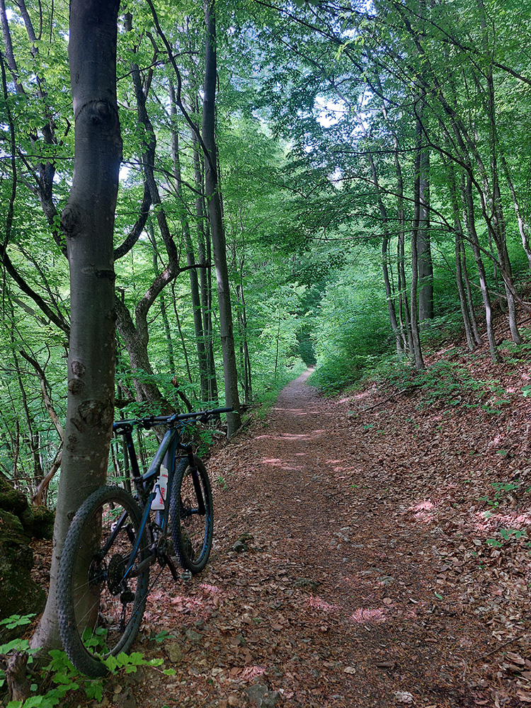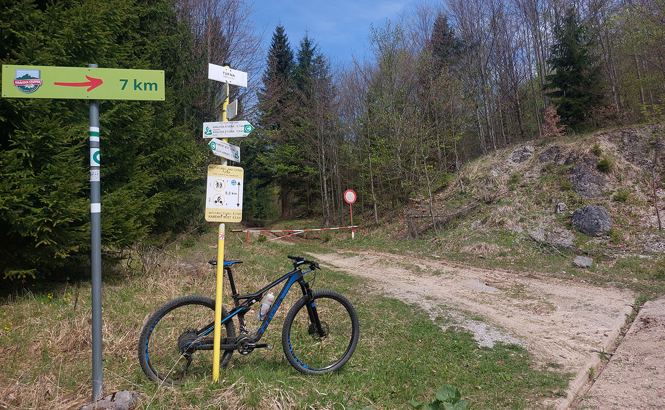 Serpentíny parádne, skaly popri nich bombastické, lesy naokolo zachovalé, výhľady takmer žiadne. Iba jeden priehľad pomedzi stromy k Čiernemu kameň, ale aj k tomu sa treba zohnúť. Len na mnohých miestach je tá šotolina pod kolesami akási až moc „kyprá“. Asi ako po zime. Metricky ale len nejakých päť kilákov a druhý, teda Veľký Šturec, vybavený tiež:
