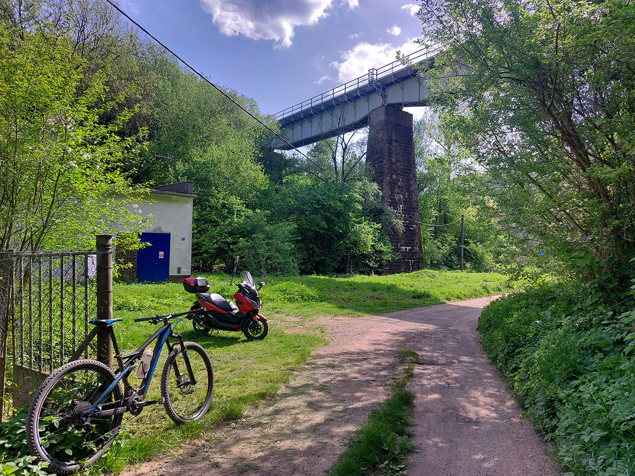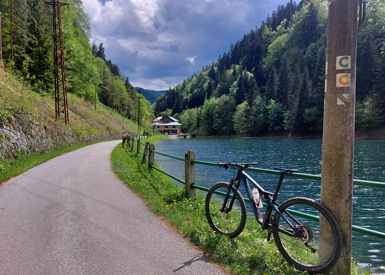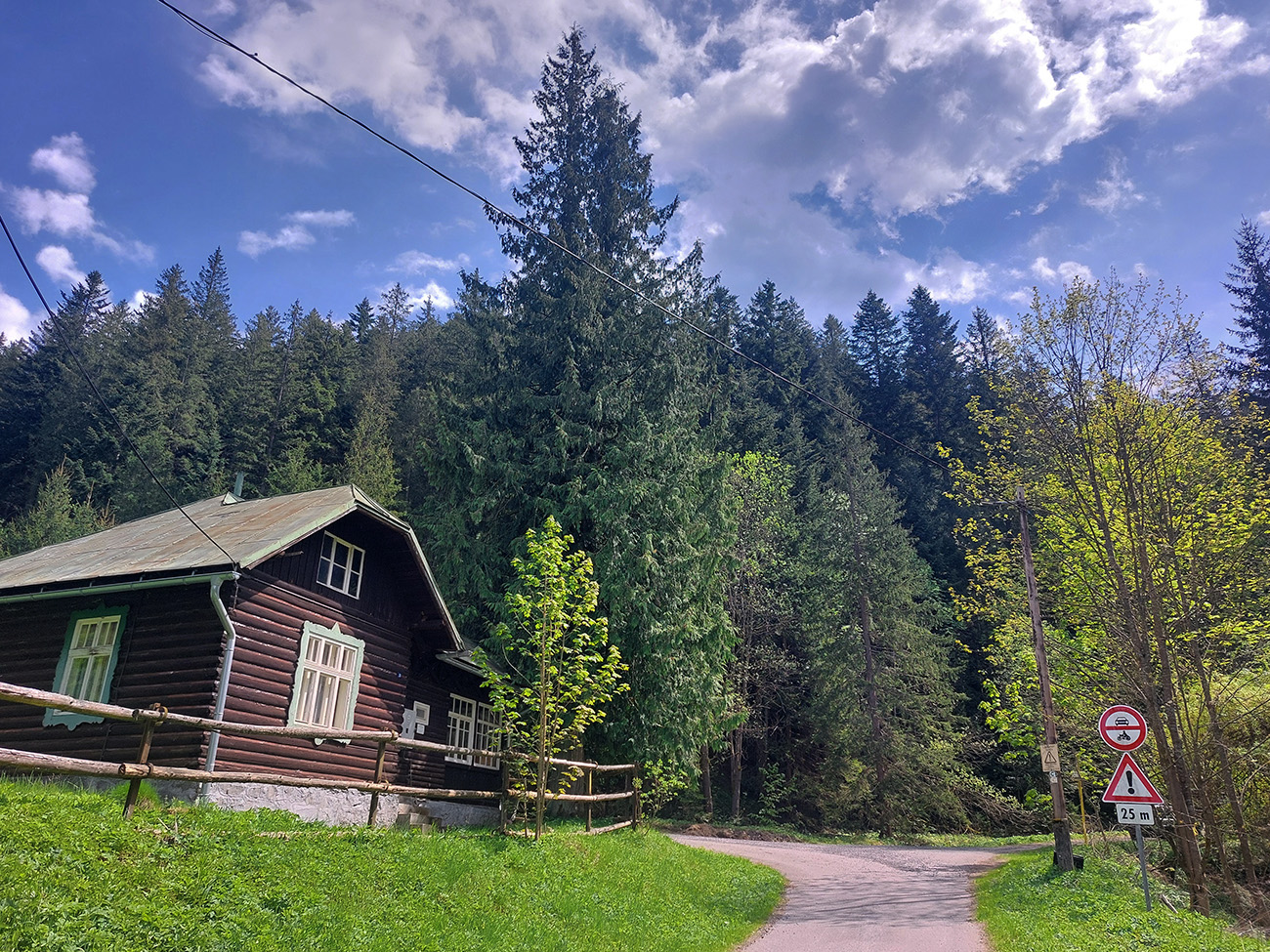 Lenivosť vyhrala, spustil som sa doprava, nech som čím skôr preč z rušnej cesty. Stúpanie popri elektrárni a pomedzi staré chalupy a socialistické chaty je potom plynulé, po asfalte až ku starej horárni na križovatke cyklotrás.