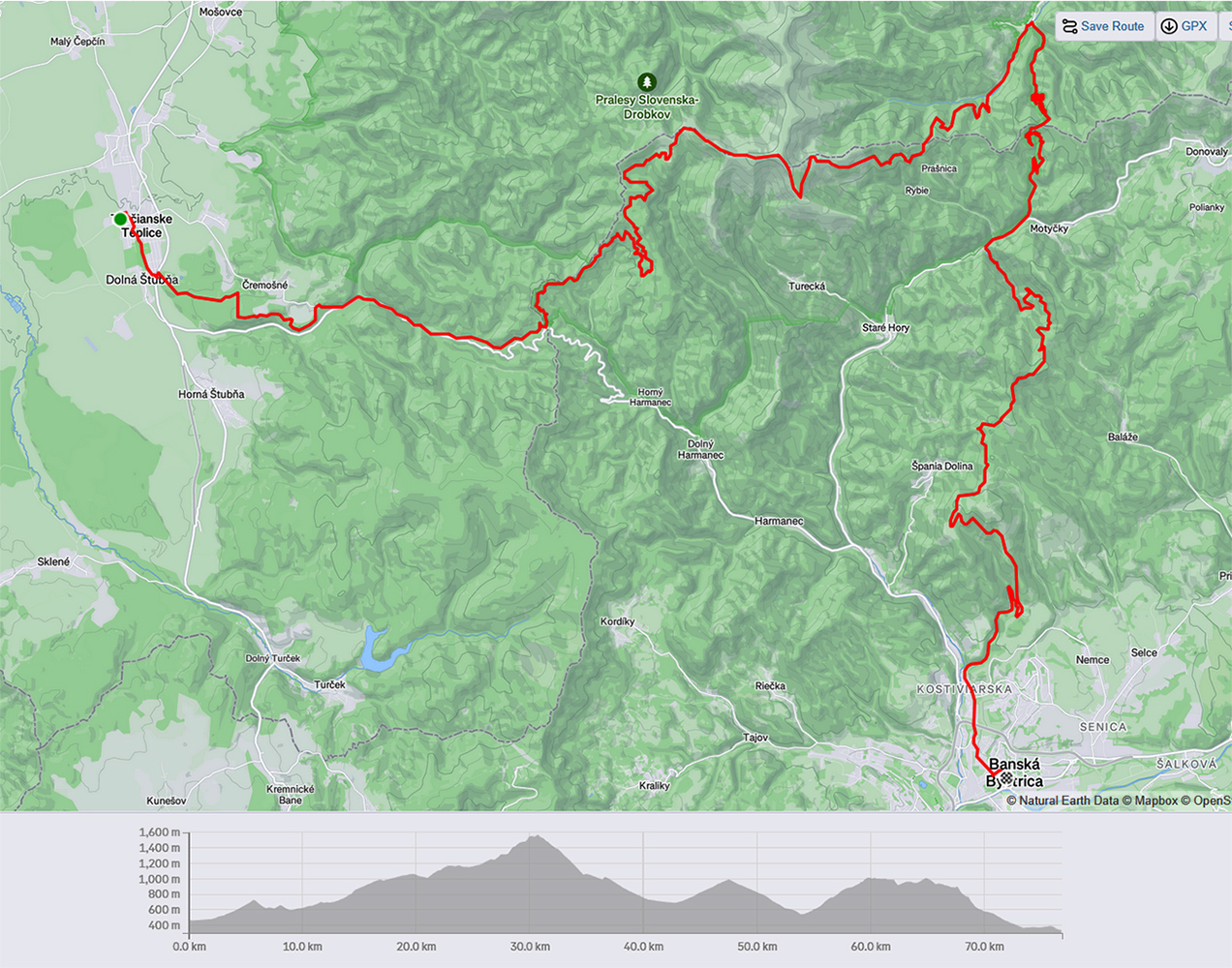 Nooo, a pretože mám rád, keď výjazd/výbeh nie je iba naháňanie kilometrov, ale má nejakú myšlienku, napadlo mi tie štyri Šturce okolo BB spojiť. Vyšla z toho logická línia z Turčianskych Teplíc cez Krížnu, necelých 80 km a 2400 v. m., akurát na fajný víkendový pojazd. Pridať piaty Šturec, ten nad Kremnicou, to už by bola väčšia frajerina, lebo o nejakých 40 km viac. Ale keď raz budem veľký...