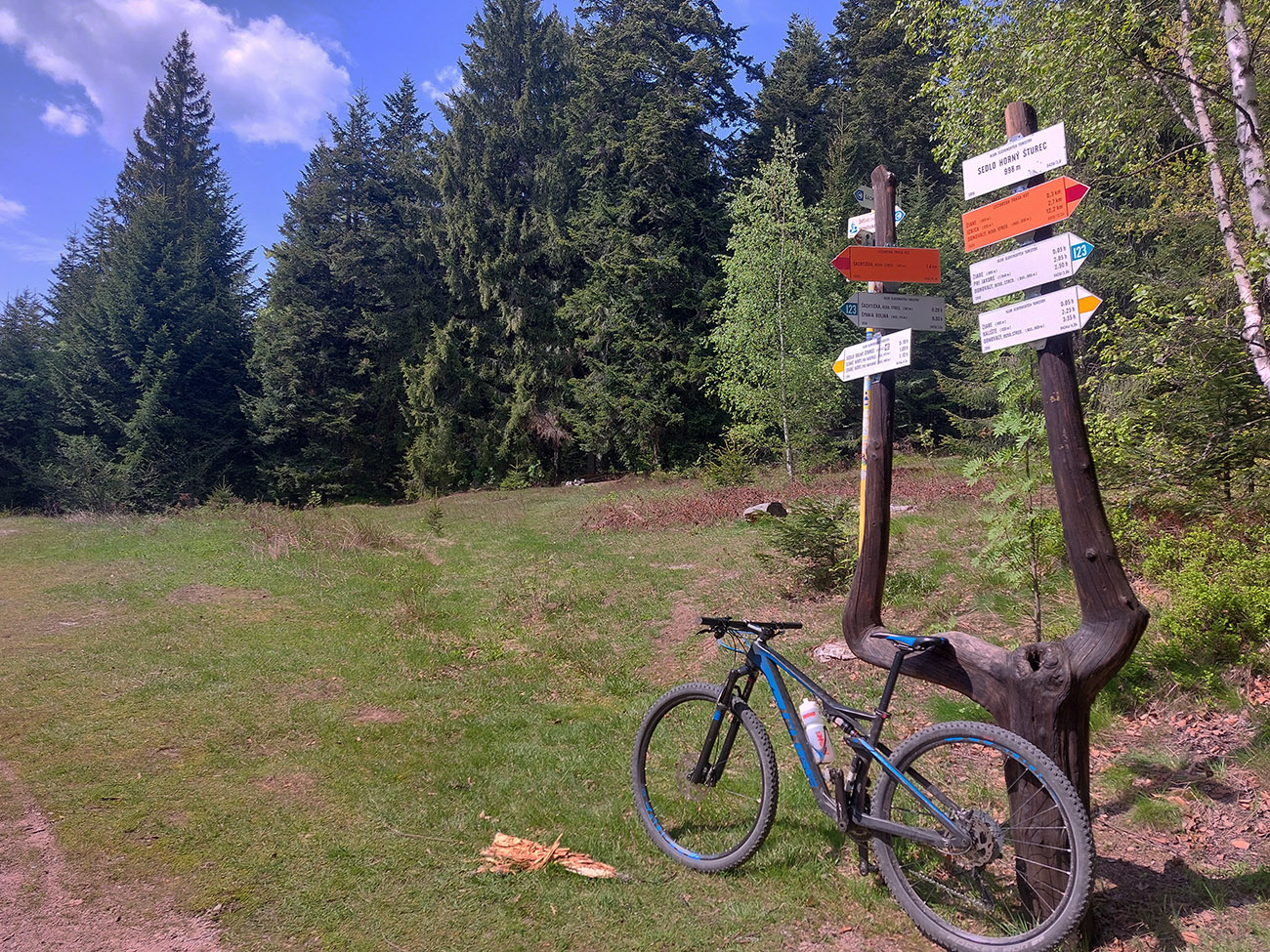 Hore zas krátka pauza na niečo do brucha a okrem krátkej strminy na úvod už len pohodové hojdanie hore a dolu, po známej turistickej „diaľnici“ medzi Šachtičkou a Donovalmi. Až do sedla Horný Šturec, čo je inak len križovatka lesných ciest, alebo skôr zákruta cesty s odbočkou:
