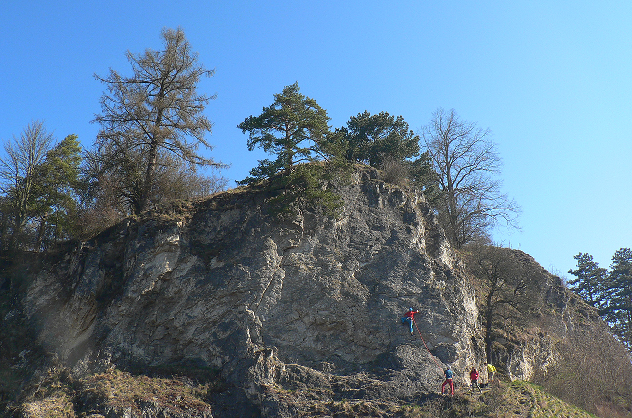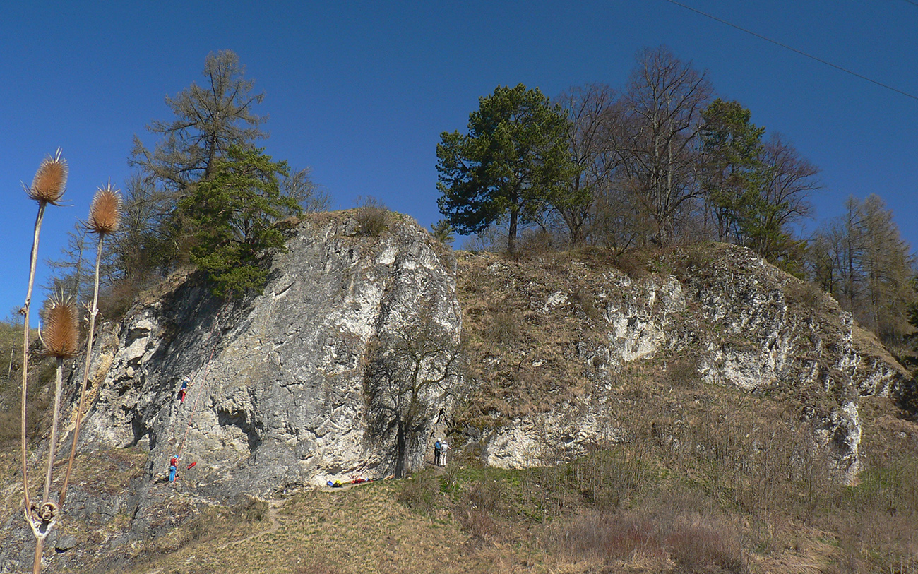 Dnes ja Skala známa najmä lezcom – je tu zo dvadsať krátkych, ale výživných zaistených ciest od 3+ asi do 8, symetricky rozdelených medzi „prednú“ a „zadnú“ stenu. Asi sa tu dá v nízkych previsoch a jaskynkách aj poboudrovať, že? Južná expozícia a kompaktná skala zaručujú, že ak aj ešte včera sa tu celý deň preháňali aprílové snehové fujavice, dnes už sa dá v krátkom a za sucha. A aj poopaľovať. Je tu aj „keška“ – ale podľa popisu skôr pre lezcov. Múdrosti o Skale aj fotky ciest som nakradol z TEJTO jej stránky: