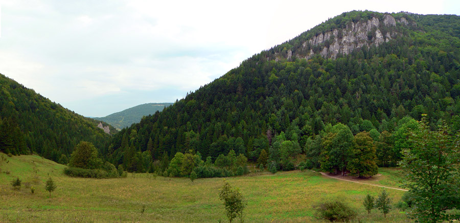 Tak sme teda došli. Užili sme si výhľady, ale aj smrad – tieto chodníky sú jedny z najviac frekventovaných a na konci suchého leta sa pod každým kríkom váľa nejaké to h... O bielych použitých vreckovkách ani nehovorím, plastového odpadu sme nazbierali za tašku, čo dodať? A kto je schopný odhodiť do trávy medzi skalné veže plechovku od piva, ten musí mať tie hovná aj v hlave :-) Už aby poriadne zapršalo! A keď už vodu spomíname, treba si nabrať na začiatku – jediný pramienok, kde sa dá doplniť (okrem bufetov) je v kaňone kúsok nad hotelom Diery. Potom až na konci, dolu v Obšívanke. V Tiesňavách sa asi nik nenapije, predsa len ten potok zbiera všetko z celej Vrátnej :-)