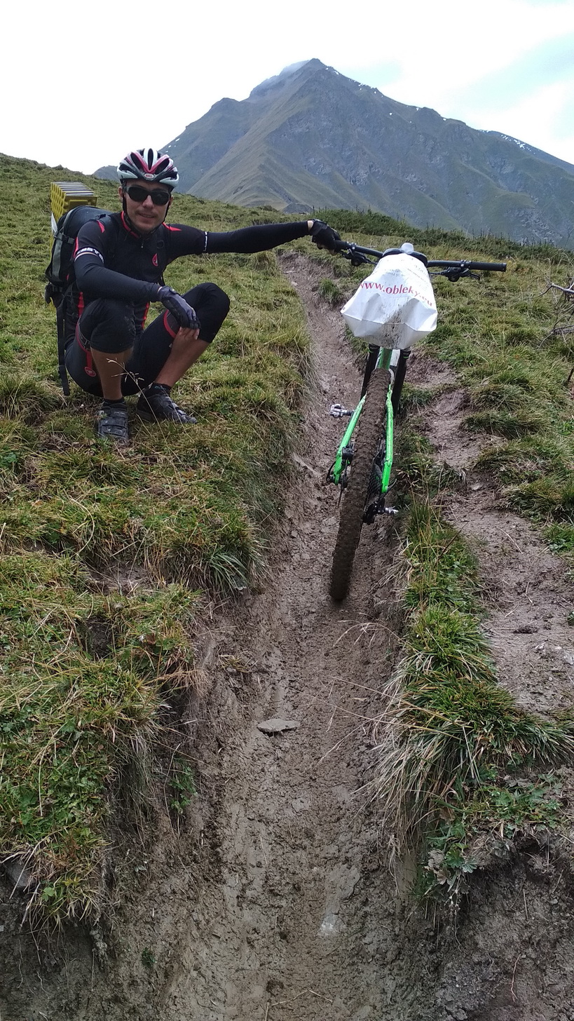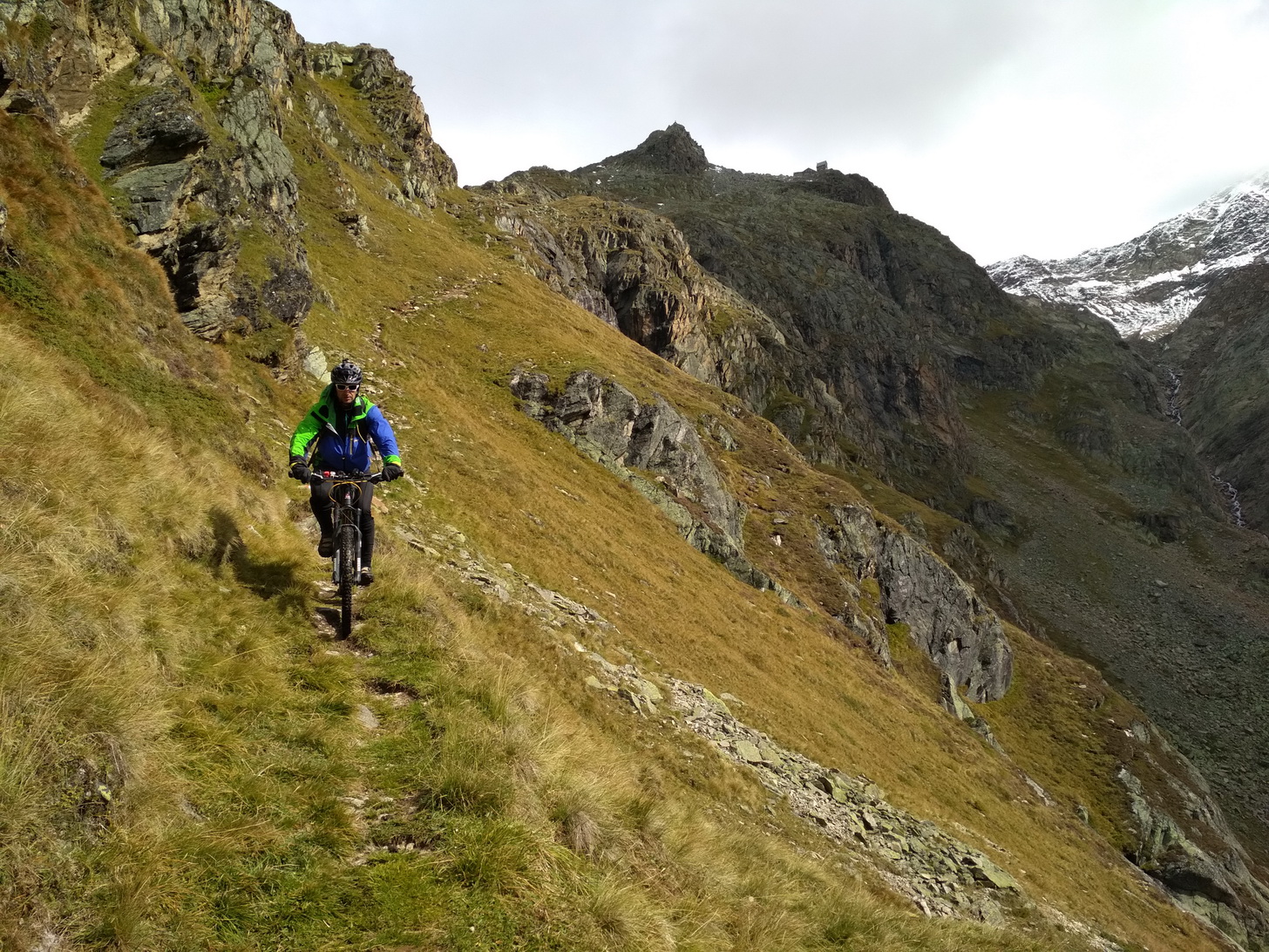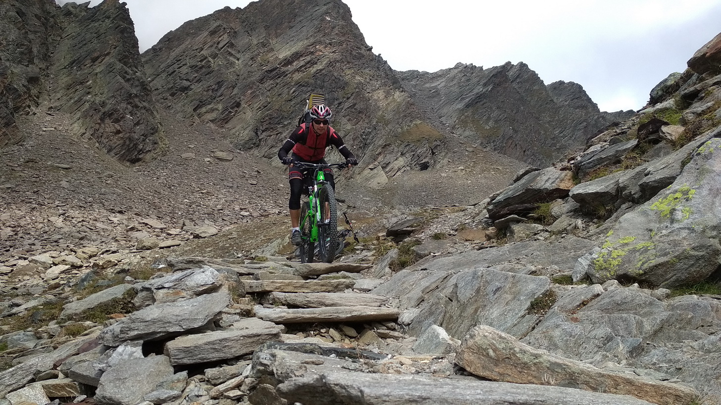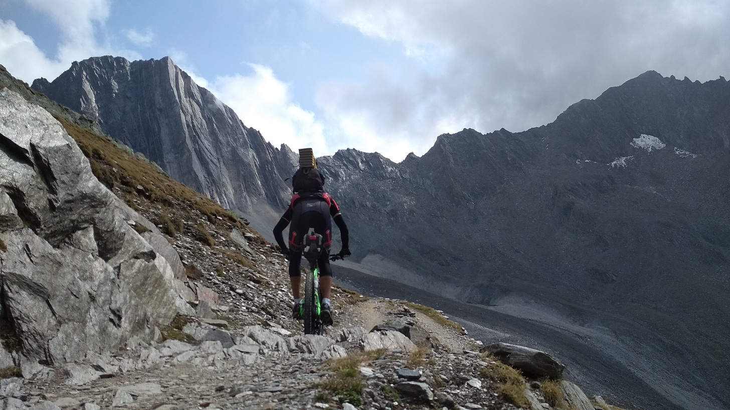 Ráno nás čaká ďalší skvost - Eisjoch. Sedlo označované za topku v Alpách. Vystúpať do sedla však znamená nastúpať na jeden záťah 1900 v.m. Asfaltkou, šotolinou a od salaša chodníčkom. Chodníček je však veľmi kvalitný, nielen vychodený, ale vybudovaný. Zrejme tadiaľ ľudia prechádzajú z údolia do údolia už stovky rokov. Sú tu vybudované serpentíny, mostíky, oporné múriky. Nie všetko sa dá vyšliapať v sedle, avšak väčšina áno. Eisjoch navyše ponúka možnosť nechať bajk na chvíľu opretý pri chate a vybehnúť si naľahko na Hohe Wilde 3480 m.n.m.