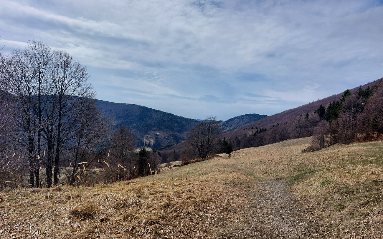 Prevažne z kopca po rozhraní Valčianskej a Slovianskej doliny je to už estetickejšie, lesy krajšie a plynulý zostup na žltú značku a k hornému okraju lyžiarskeho strediska vedie po príjemnejších cestách. Aj cez veľkú lúku na južných svahoch, sklonených už do Slovianskej doliny.