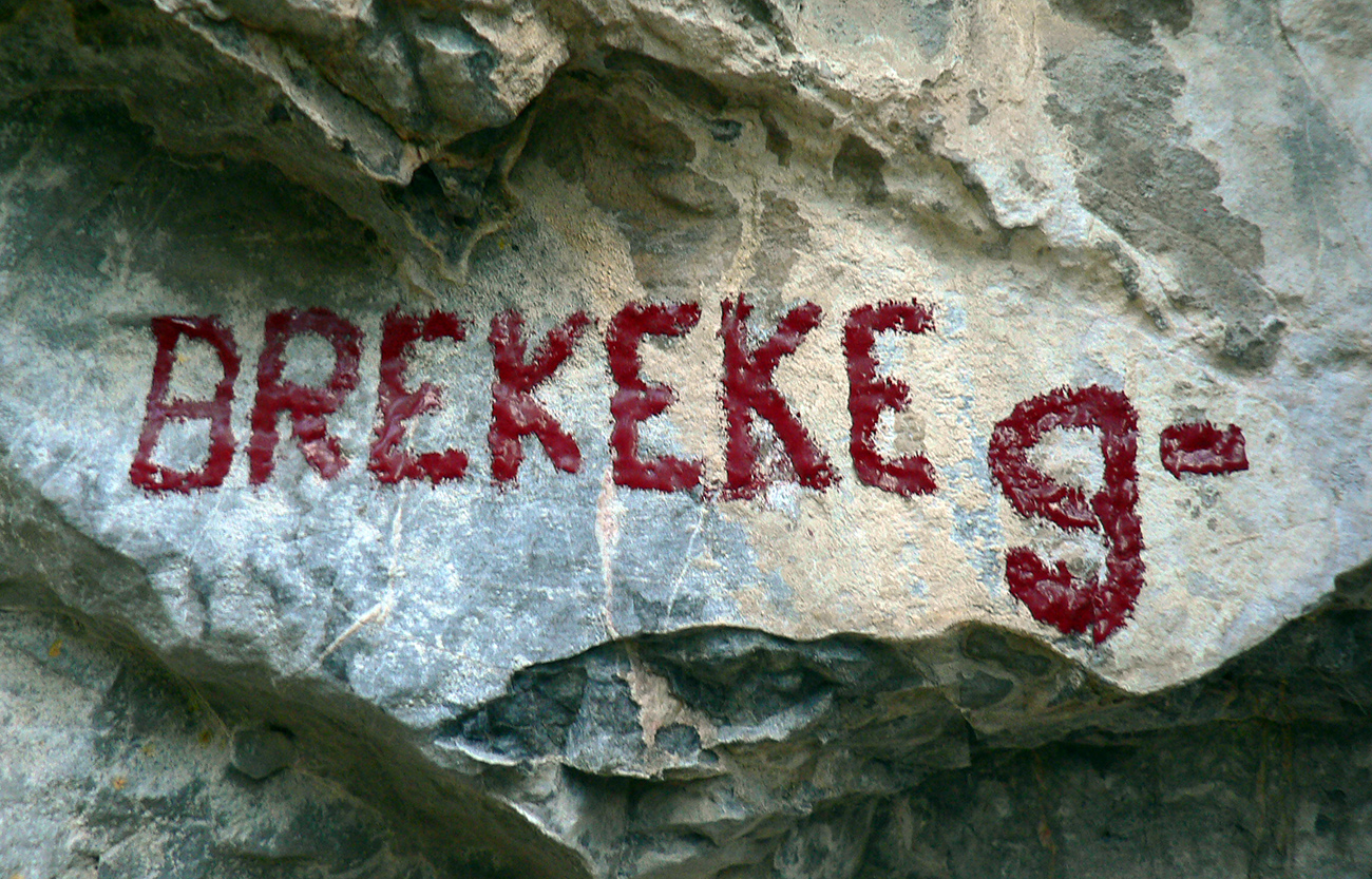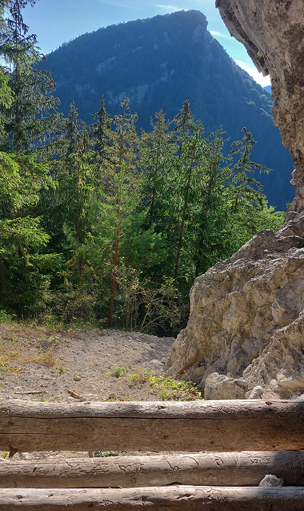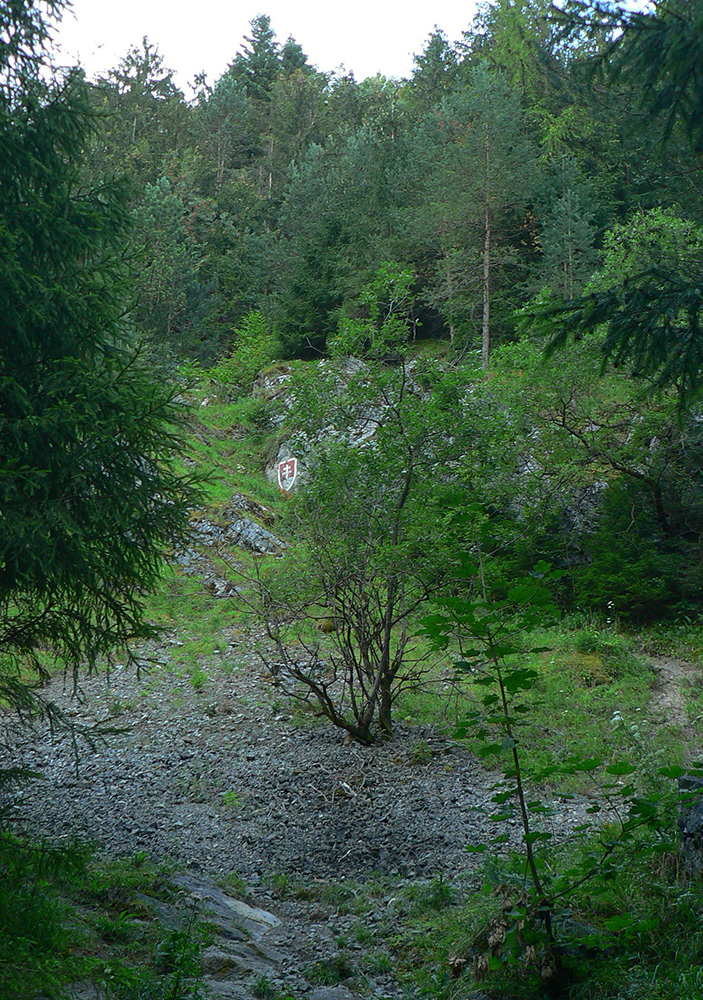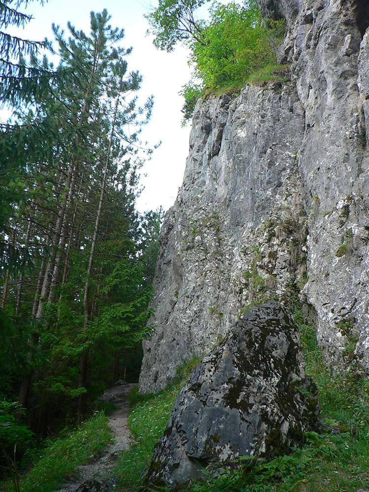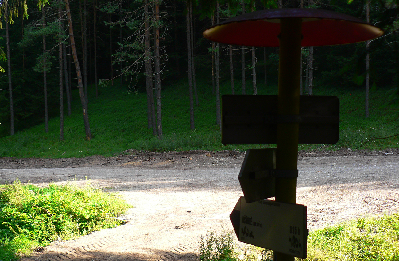 Dole dolinou len kúsok, minul som výjazd z bajktrailu Anakonda (TU) a o chvíľu už ma ťahala výrazná odbočka doprava, do starého lomu pod Hoblíkom. Na jeho začiatku zas doprava – ani tu sa nedá minúť odbočka z rovného do strmého chodníka, ktorý cikcakmi neomylne vedie hore, v ústrety bralám. A k nástupu do cvičnej ferraty, ktorej železo je ale zavesené dostatočne vysoko, aby nevybavených náhodných okoloidúcich veľmi nelákalo štverať sa hore. Aj pokyny na ceduľke hovoria jasne. Na vyhliadku nad ferratou sa dá dostať samozrejme zhora po chodníku.