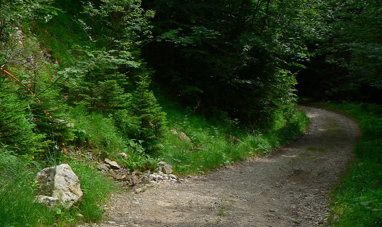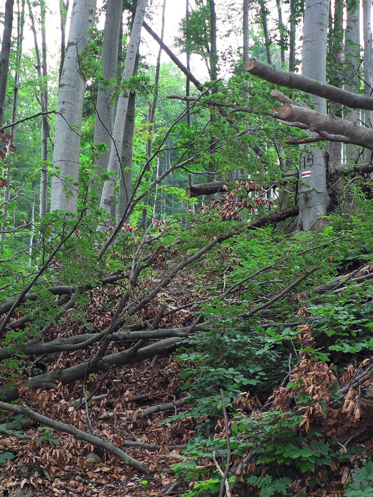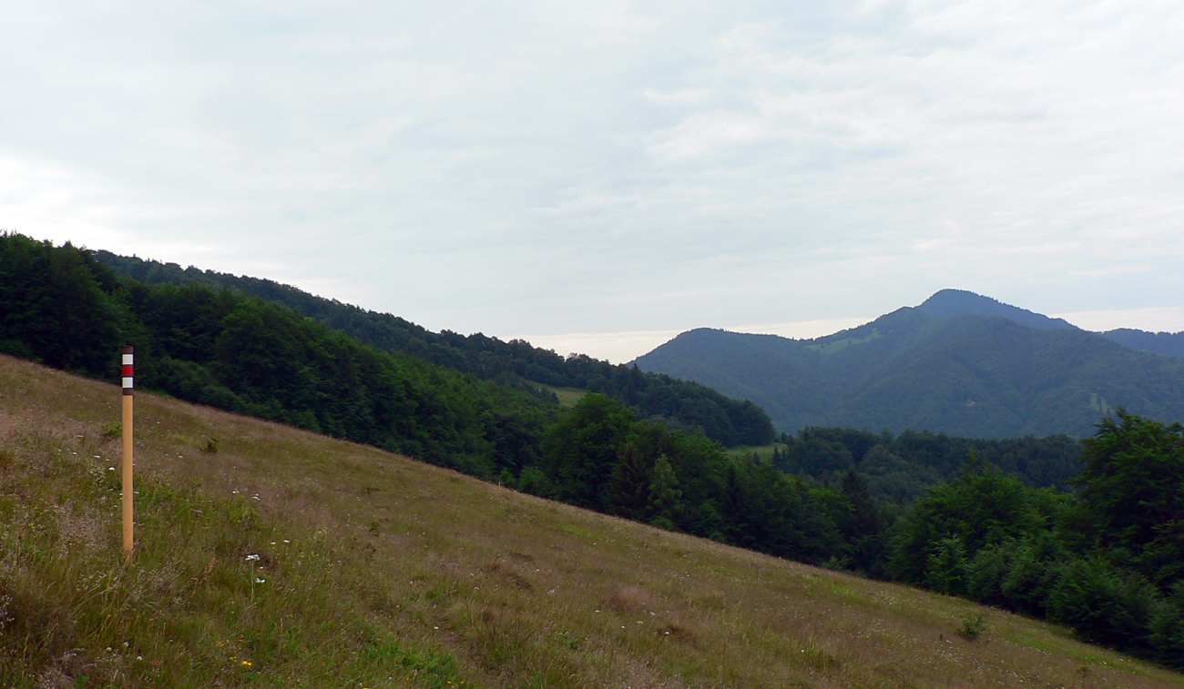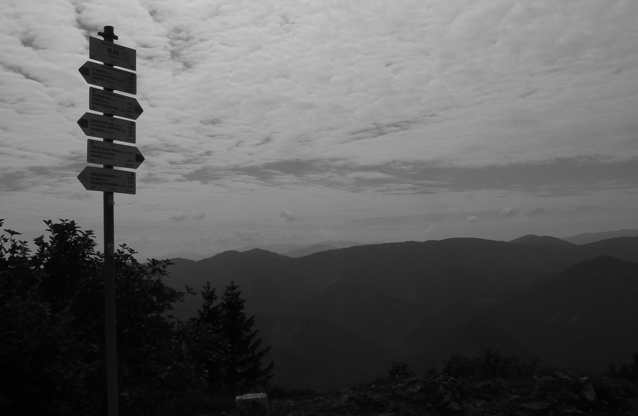 Z Kľaku prudko dole a najhorší úsek na najhoršom úseku – okolo Svrčníckeho sedla. Problém je aj ponáhľať sa, nie že bežať. Konáre oči vypichujú, pod nohy nevidno, preliezačky, obchádzačky v kalamitiskách a rúbaniach, bleee. Naproti tomu okolo kóty Široké široká cesta, až na Jarabinú. Potom séria jednotvárnych stúpaní a klesaní cez Malý Lysec až na Javorinu. Slnko v mrakoch, chodník v lese, prefukuje studený vetrík zo sv, dá sa. A východ z lesa na Jarabine do najkrajšej časti dňa! Vpredu vidno chatu pod Borišovom: U žobre, že chce kofolu. O nepovoľuje, že čas tlačí, že dostane v Tureckej. Tak ani k chate sa nejde, len okolo smerovníka doľava a pauza povolená na kameni pri prameni - v traverze Ploskej. Druhé tankovanie, k tomu šrotovanie chleba so syrom. Kým žalúdok funguje.