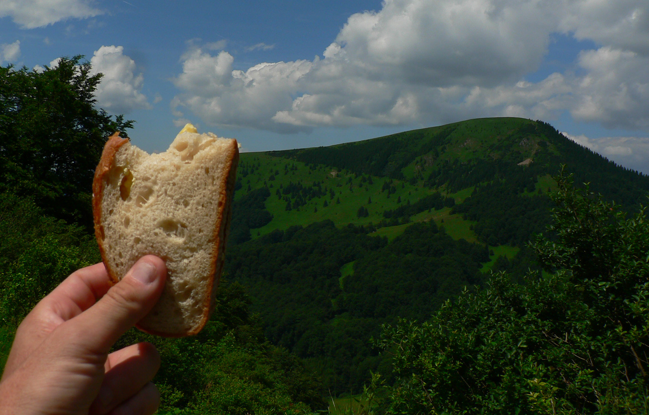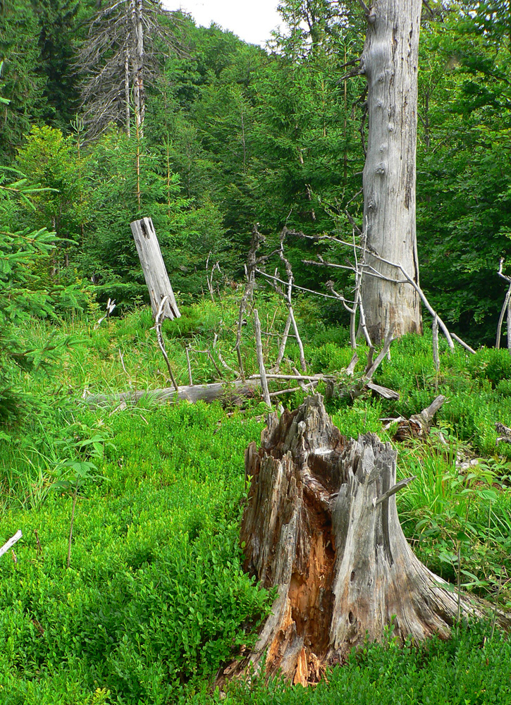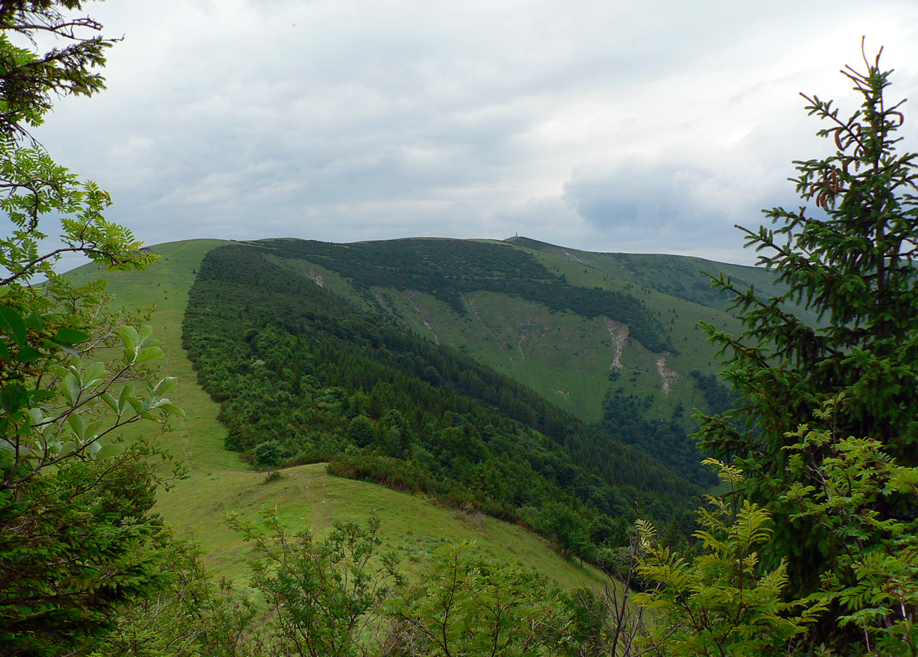 Z Kľaku prudko dole a najhorší úsek na najhoršom úseku – okolo Svrčníckeho sedla. Problém je aj ponáhľať sa, nie že bežať. Konáre oči vypichujú, pod nohy nevidno, preliezačky, obchádzačky v kalamitiskách a rúbaniach, bleee. Naproti tomu okolo kóty Široké široká cesta, až na Jarabinú. Potom séria jednotvárnych stúpaní a klesaní cez Malý Lysec až na Javorinu. Slnko v mrakoch, chodník v lese, prefukuje studený vetrík zo sv, dá sa. A východ z lesa na Jarabine do najkrajšej časti dňa! Vpredu vidno chatu pod Borišovom: U žobre, že chce kofolu. O nepovoľuje, že čas tlačí, že dostane v Tureckej. Tak ani k chate sa nejde, len okolo smerovníka doľava a pauza povolená na kameni pri prameni - v traverze Ploskej. Druhé tankovanie, k tomu šrotovanie chleba so syrom. Kým žalúdok funguje.