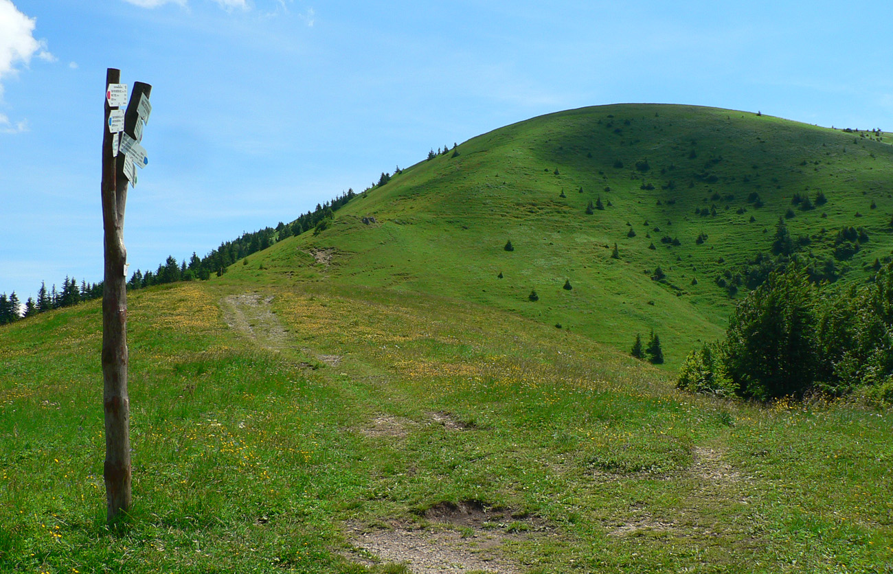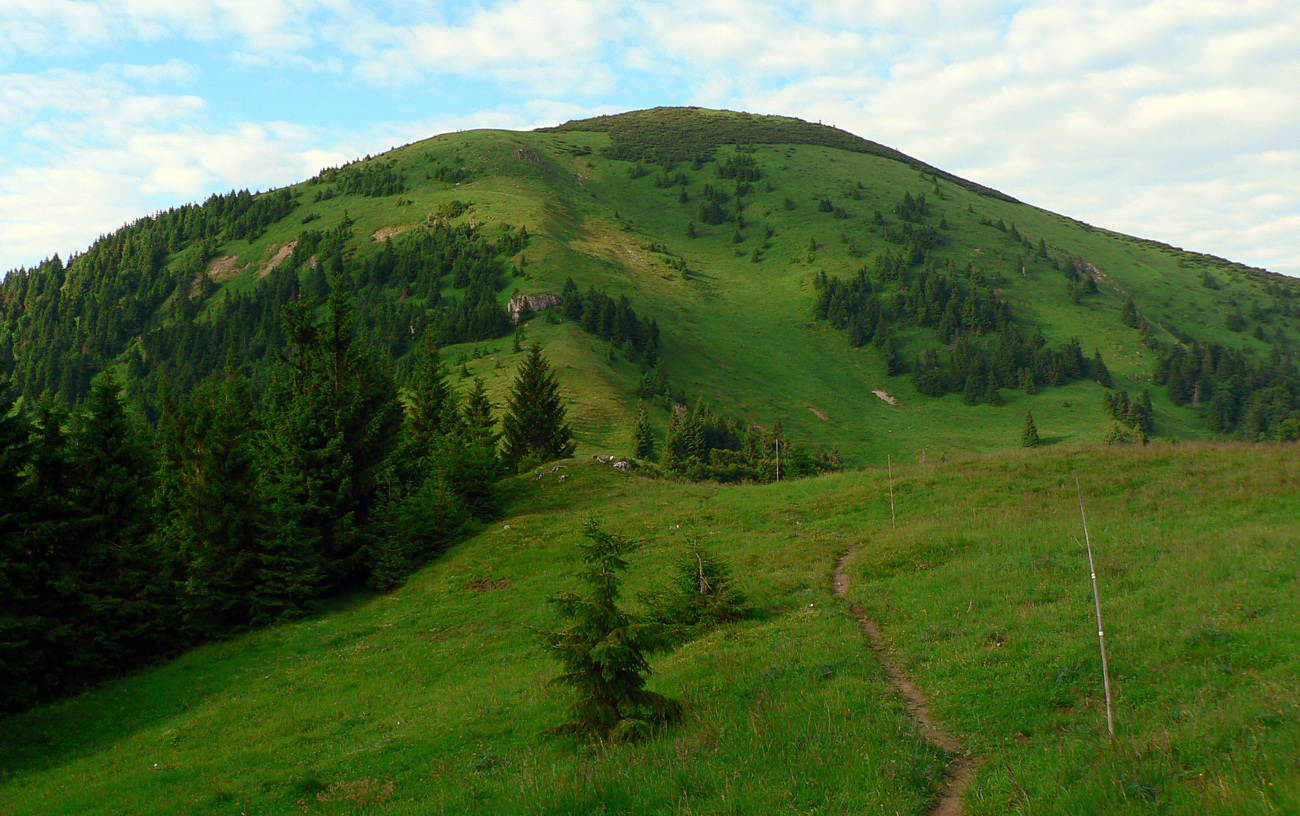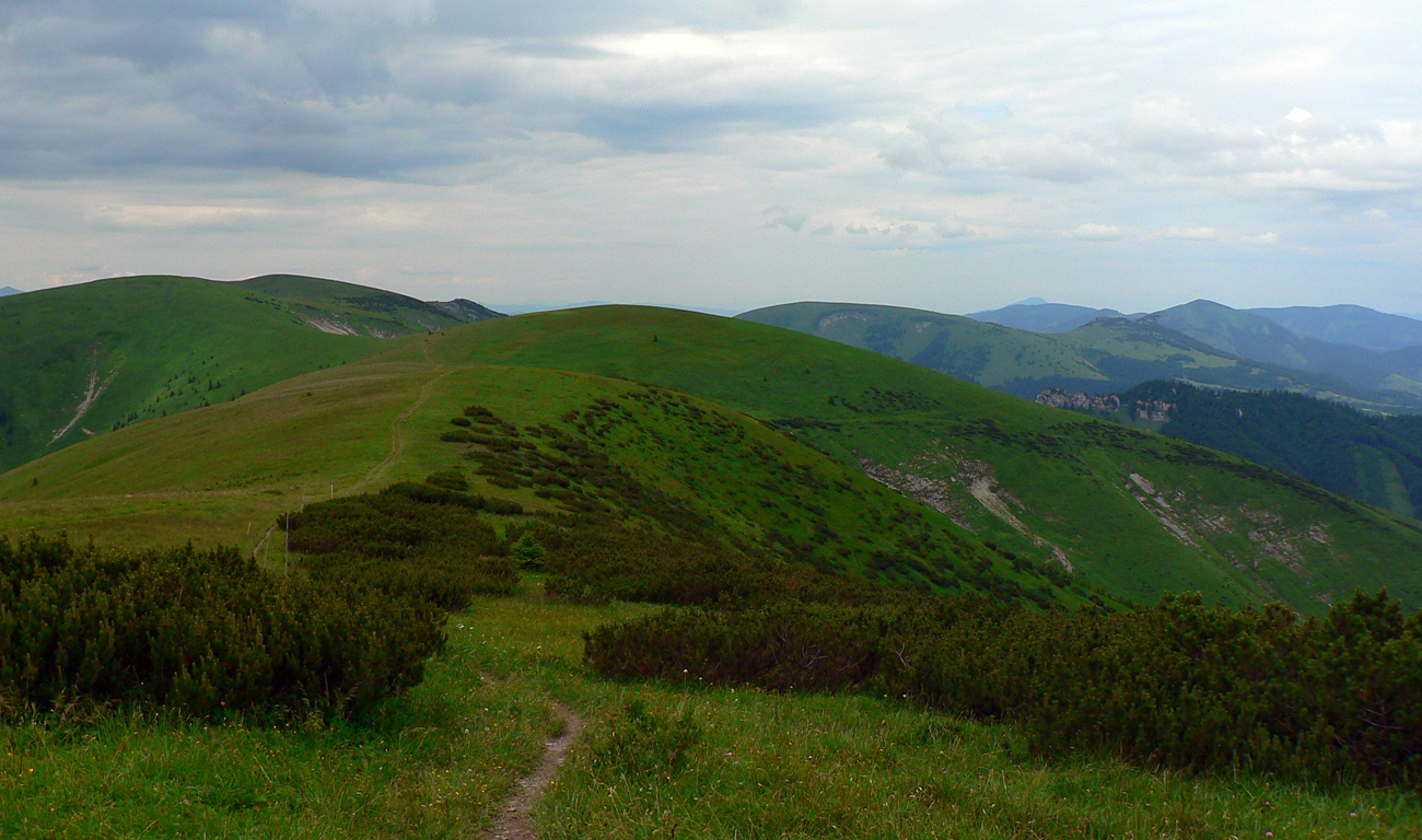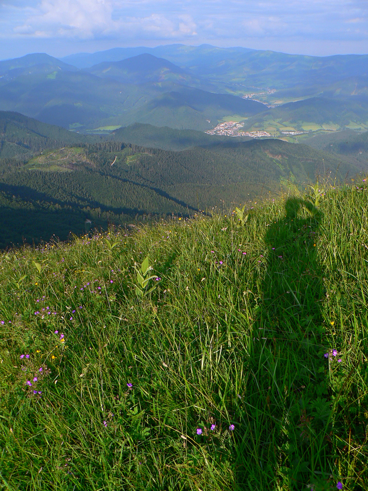 U skáče z vlaku ktorý NEMEŠKAL!!! a o chvíľu už sa prediera blatom zvážnic, vývratiskom a malinčím strmo hore na Kopu. Najhorší úsek (až pod Borišov) na úvod, kým nohy idú, tu ešte U súhlasí s O. Z Kopy dole do Ľubochnianskeho sedla jahôd na mrte, priamo pod nohami, odolať sa nedá, len O trochu frfle, že nezdržovať! Prvá fľaša vody padla už vo vlaku, druhá išla za ňou rýchlo (suší, po kuse slaniny na raňajky), ale s tým sa rátalo, napájadlá pod Nižnou Lipovou sú istota. A krásne lúky až po Príslop. Potom séria strmákov až na Kľak, spestrená burinou vyše hlavy na lúke pod Chládkovými. Ale nohy idú!