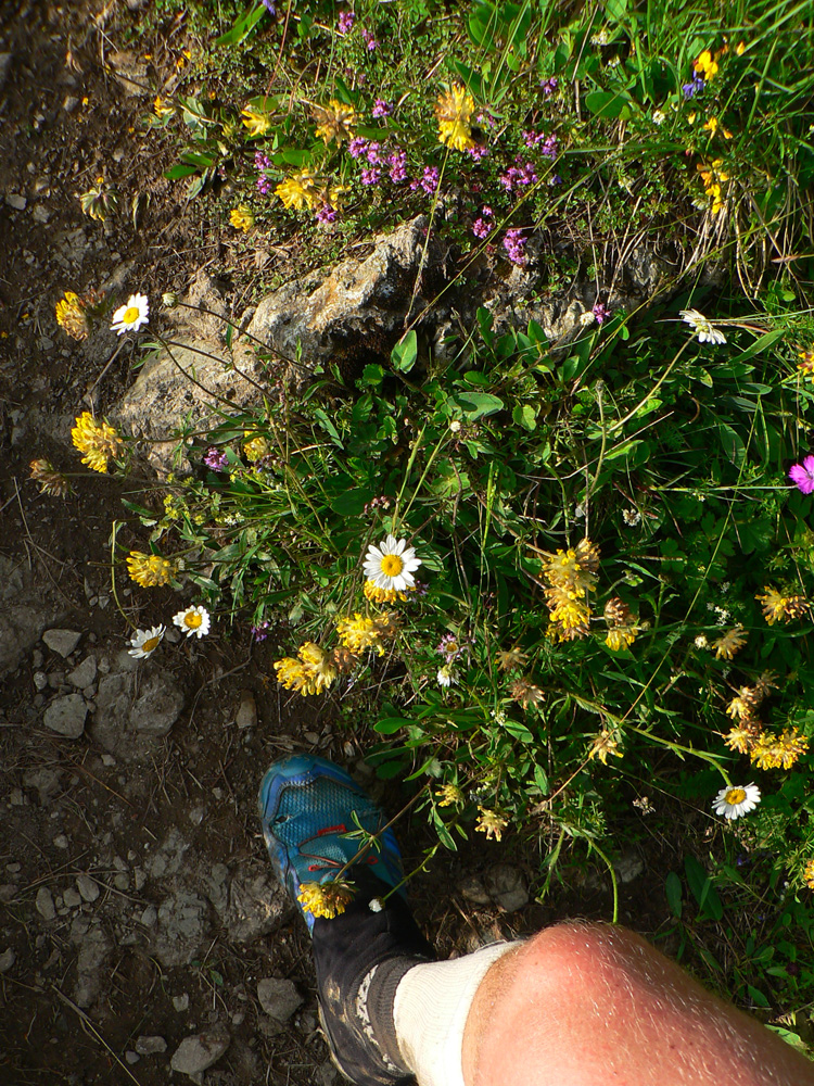 Hor sa do druhej polovice! V podstate z najnižšieho na najvyšší bod trasy, na parádu výmysel. Na začiatok nie až dole do Starých hôr, ale pekne po zvážniciach ponad, proti šípkam „ultra Krížnej“, ktorá sa tu behala nedávno. Aspoň to. Pod Majerovou skalou aj tak kofola a horalka už ako palivo nestíhajú, na rade je „zubná pasta“ X-iont. Ešte ostali dve od vlani. Niektorých ľudí zdravíme dnes už druhý raz (tie divné pohľady...). Konečne – druhý raz Krížna, Ostredok, Suchý vrch, pastier s ovečkami a koniec spoločného úseku pod Ploskou. Sem to išlo super (vďaka gélu a gravitácii), na Ploskú je to už trochu horšie, také monotónne, ale zas poctivo až hore, žiadne obabrávačky traverzom!