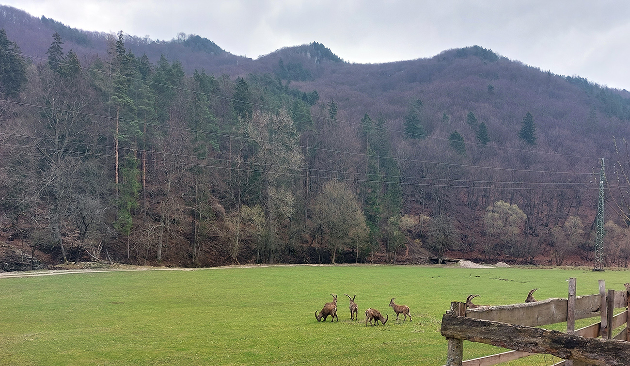 Za Visolajmi odbočka do doliny Pružinky a v Tŕstí znovu doprava, tam to malo začať. Modrá cyklistická a zelená turistická, ale najmä asfaltová cesta popri Strážovskom potoku (a na začiatku aj popri poriadnej obore). Pri sanácii nebezpečného brala pod Mojtínom v r. 2019 súžila ako obchádzka, tak som dúfal... A dúfal som dobre, lebo síce v dedine povrch nič moc, ale hneď za ňou preukrutne komfortný asfalt. Naľavo sa pásli za plotom dáke kozorožce, napravo trčala Ostrá Malenica ako dominanta nad miestnou krajinou, dooobre to začínalo!