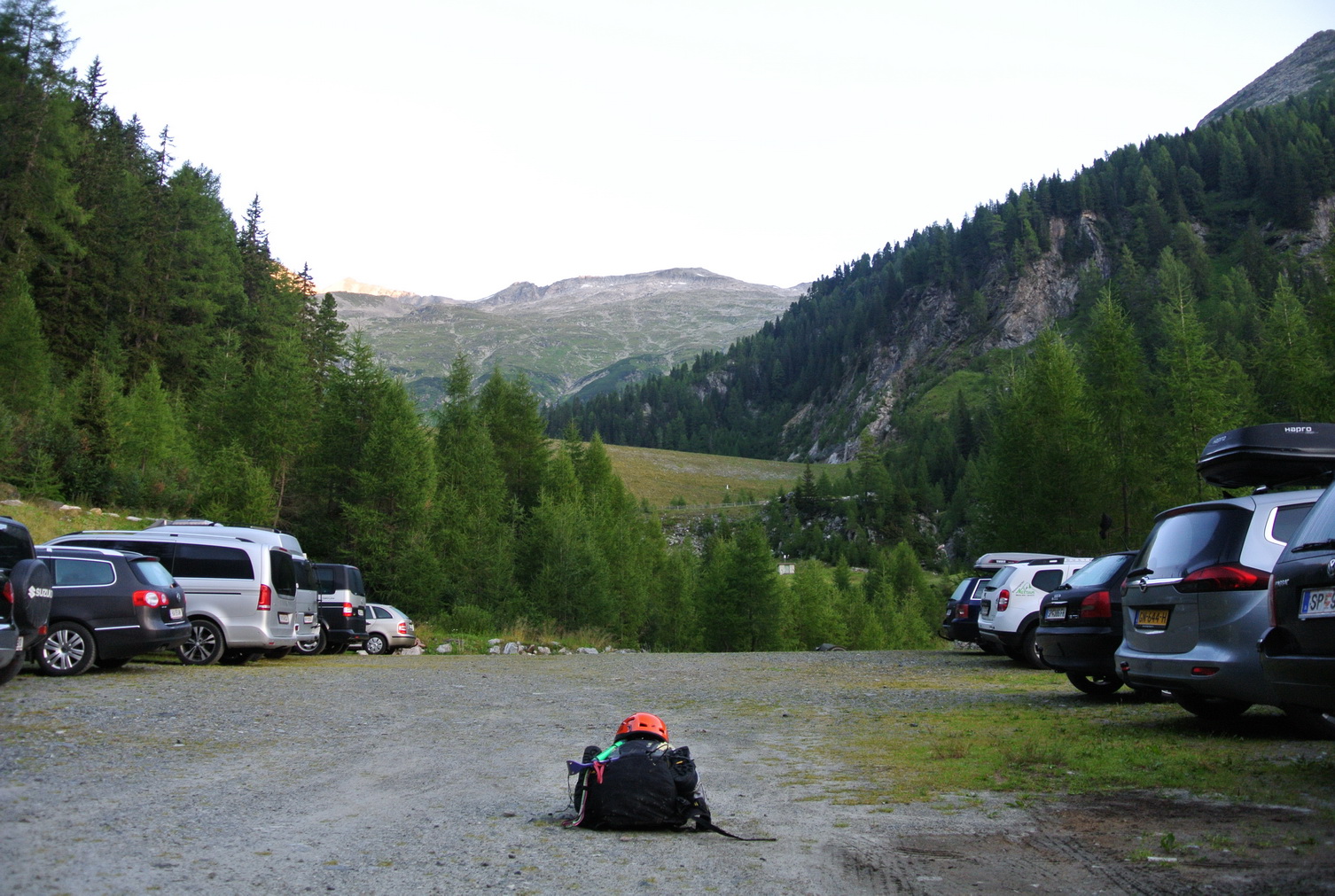 Tmou sa kĺžem po rakúskej zemi a vynáram sa v dedinke Malta. Svetlá auta z hlbokej noci vyrežú „Giessener Hutte“ na akomsi drevenom smerovníku a ja sa popri potoku Gossbach úzkou cestičkou dostávam na parkovisko Gosskarspiecher. Niekoľko ľudoprázdnych áut, spiaci stan a 2 ľudské prízraky na kempingových stoličkách svetielkujúce do tmy applovými monitormi. Ráno bude rušno. Šuštiacim spacákom prikryjem svoje sny a cez sklá auta nechávam hviezdy, nech sa spočítajú samé. Šum potoka sadá na viečka a ťažisko noci sa zapichne do unaveného tela. Chrápem?
