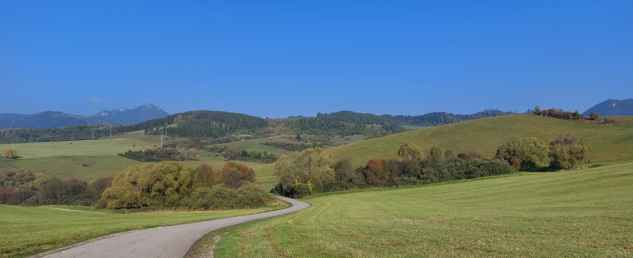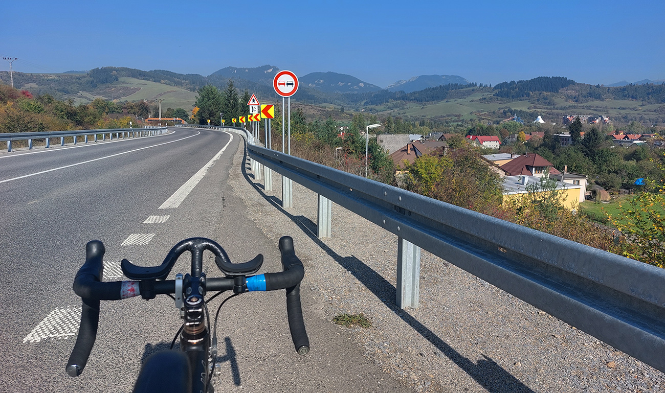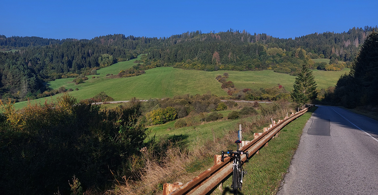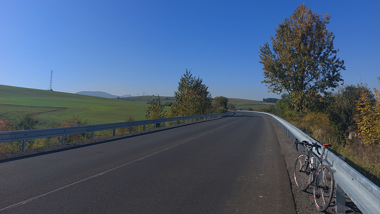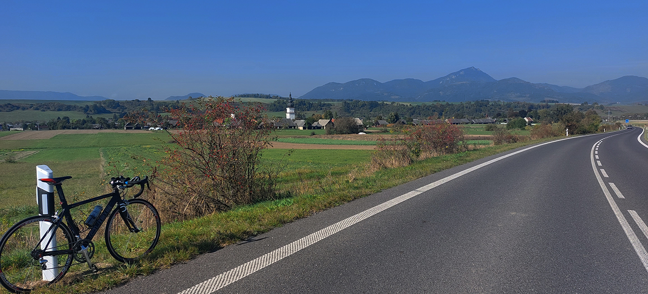 Cesta I/18 je široká, ale už dáááávno ju nahradila diaľnica, a tak je väčšinou tichá. A teraz ju konečne po tisíckach rokov rekonštruujú, tak sa teším na nový asfalt, lebo už bol ten starý poriadne drssssssný a jeho okraje poriadne zubaté. A ozaj: už je oprava skoro hotová a ide sa parádne, tichúčko a hladúčko, no rozkoš aj do tých tiahlych stúpaní. Panorámy najčastejšie na okolité pasienky, lebo vľavo sú Nízke Tatry v protisvetle a Mara vpravo sa ukrýva za pahorkami.