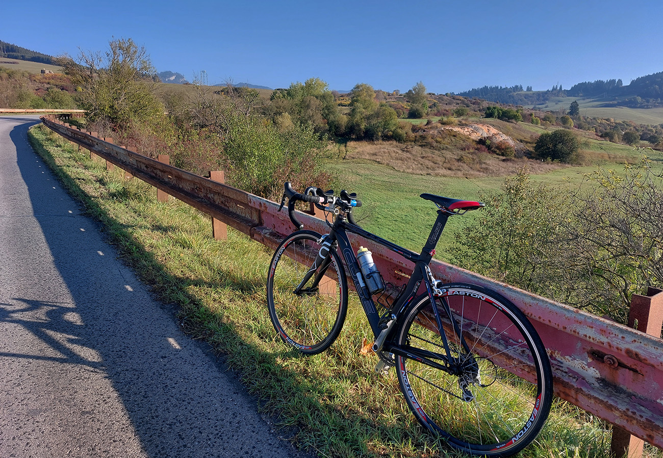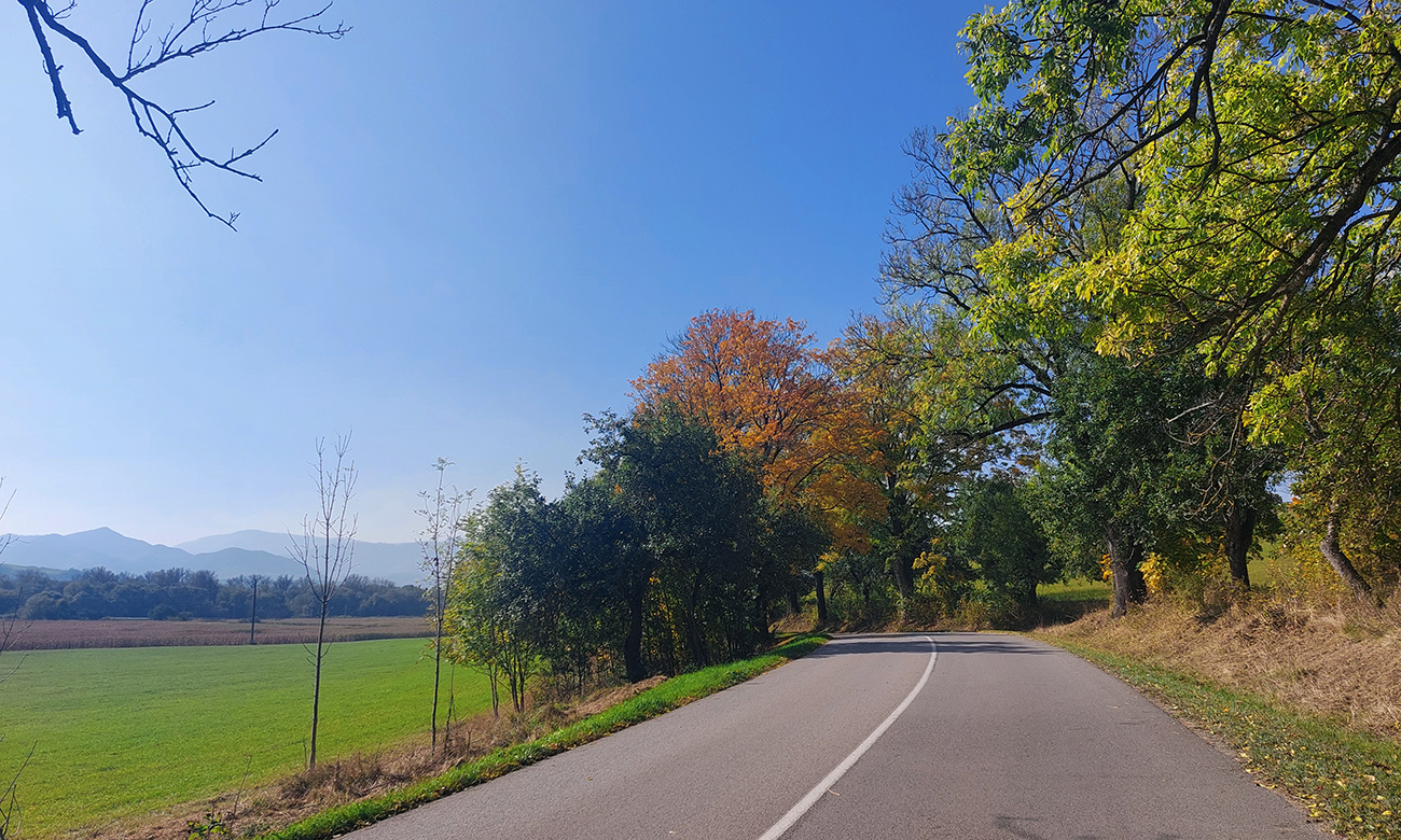 Za Ľupčou už spredu silnie hukot diaľnice a po chvíli uzatváram okruh v Bešeňovej. Do Teplej je to tiež len na skok a mám ešte čas do príchodu vlaku, tak ťahám až do Liskovej. Oplatí sa – cesta je lemovaná krásnymi, starými stromami a okolie hrá jesennými farbami. Len pred dedinou, ako stavajú diaľnicu, poriadne blato na ceste. A ešte čerstvo pokropené, ako sa ho snažia z tej cesty zmyť. No čo, aj tak som potreboval poriadne umyť bajk. A to ozaj dôkladne, lebo to možno bola naša posledná spoločná jazda.