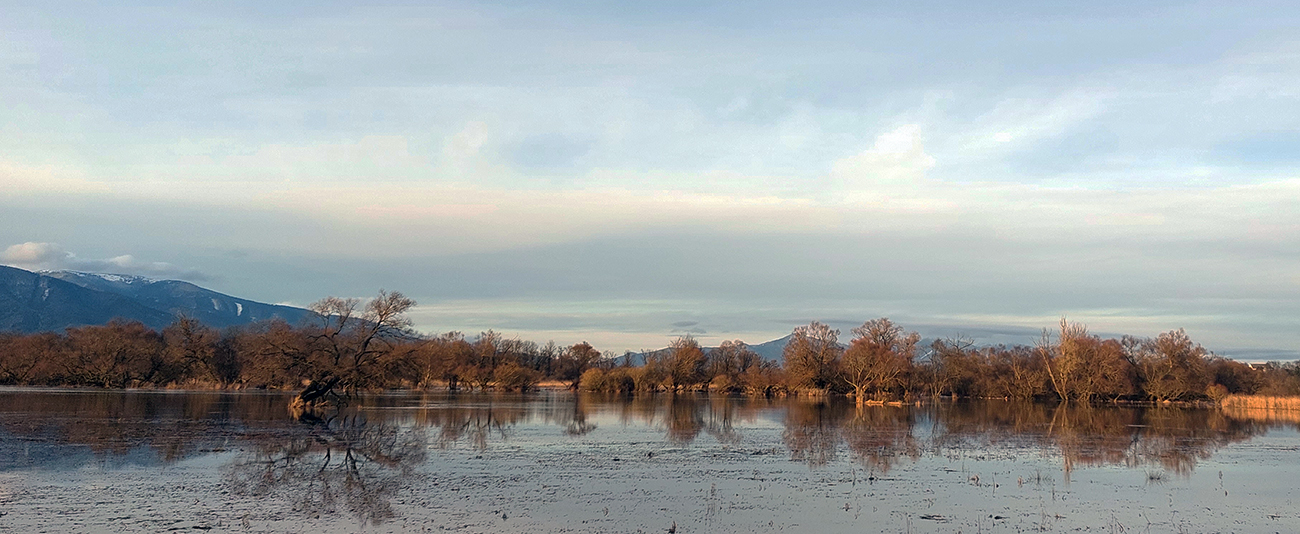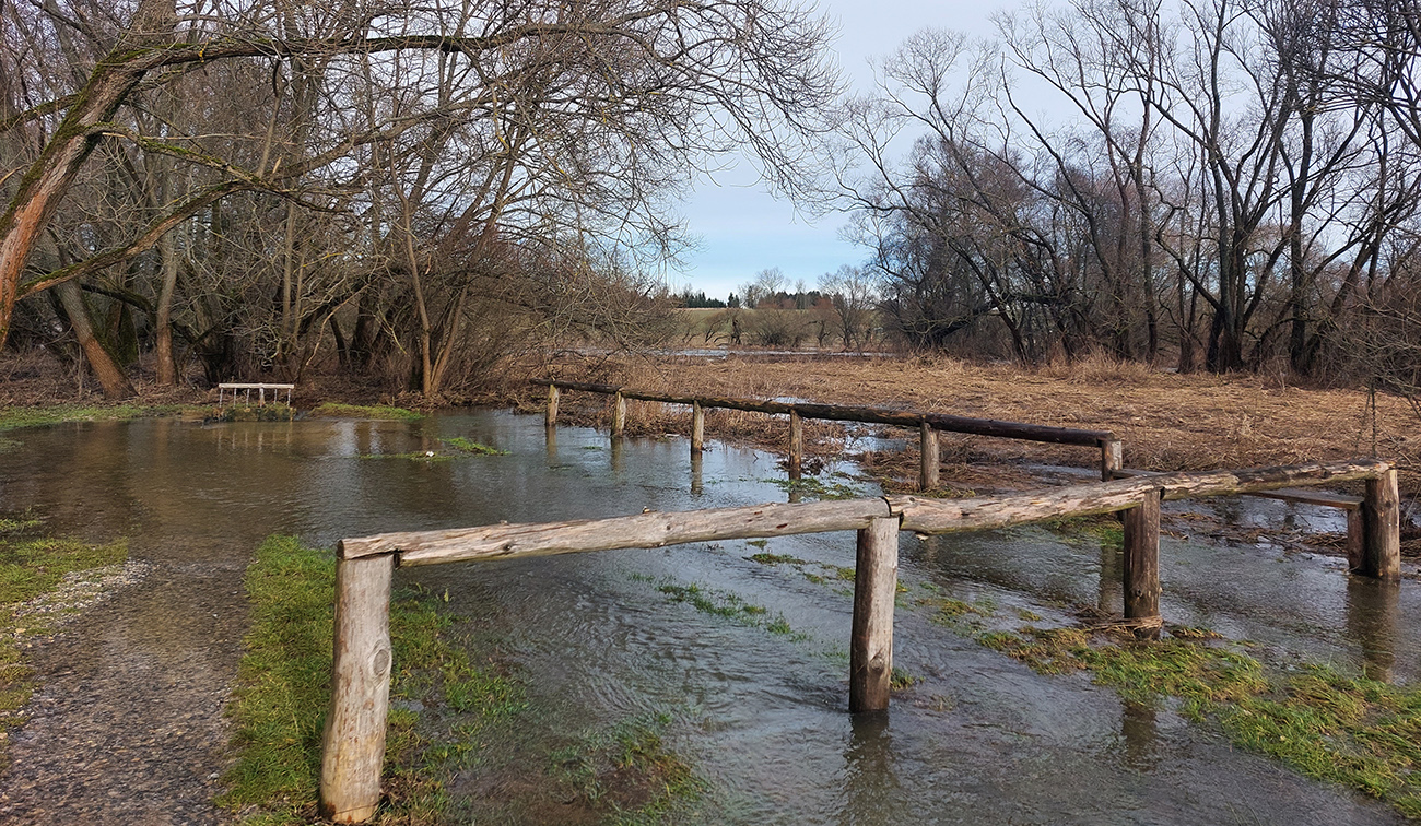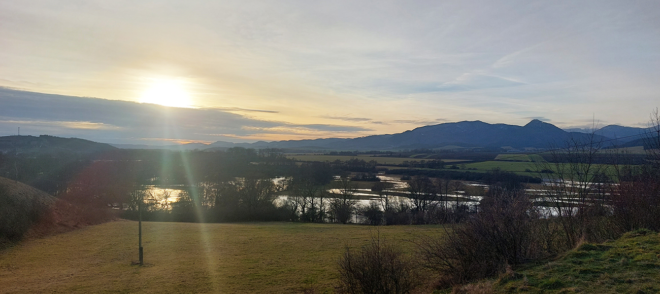 Tak som začal symbolicky v Jazernici, po našom Lake City. Ak nasneží a cestári posolia, bude aj Salt Lake City. Teraz akurát jazerá všade na lúkach okolo dediny. Najskôr teda kúsok na sever: popri odbočke do Blažoviec, ktorá bola ako pekný brod. V Moškovci zas mali miestne kozy ubytovanie priamo na pláži. Okolo nich som to stočil na Laclavú a už som cestou obzeral povylievaný Turiec. CHA Ivančinské močiare sa zmenili na Ivančinské more. Za Veľkým Čepčínom pekný pohľad do zaliatej nivy z nadhľadu riečnej terasy, aj keď z diaľky.