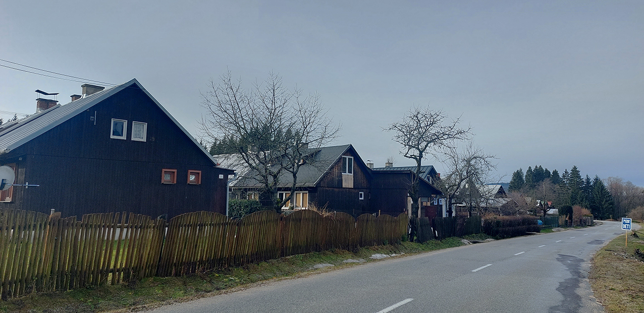 Do Skleného je to cez Rovnú horu cez mierny kopček, ale vjazd do lesa som zase pekne vbrodil. Inak vojaci tam nové zákazy státia napichali, nebudú si už na jeseň hubári len tak kade – tade parkovať. Sklené je vo svahu, záplavová jazerná romantika nehrozila, tak som aspoň išiel kuknúť, ako vyzerá Turiec za dedinou – no, ako pravá horská riava, taká skoro tatranská. Cestou tam aj nazad ešte ďalšia symbolika: obytná kolónia na východ od dediny sa volá Fínske domčeky: