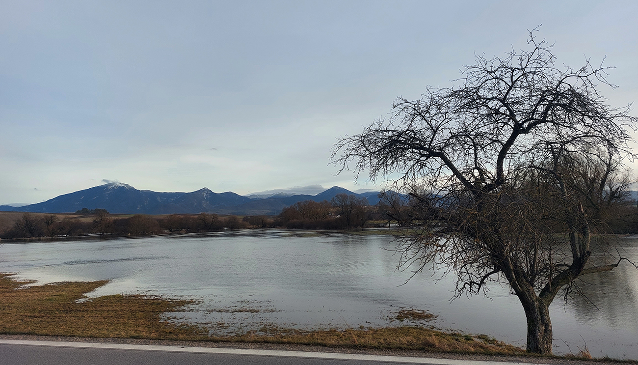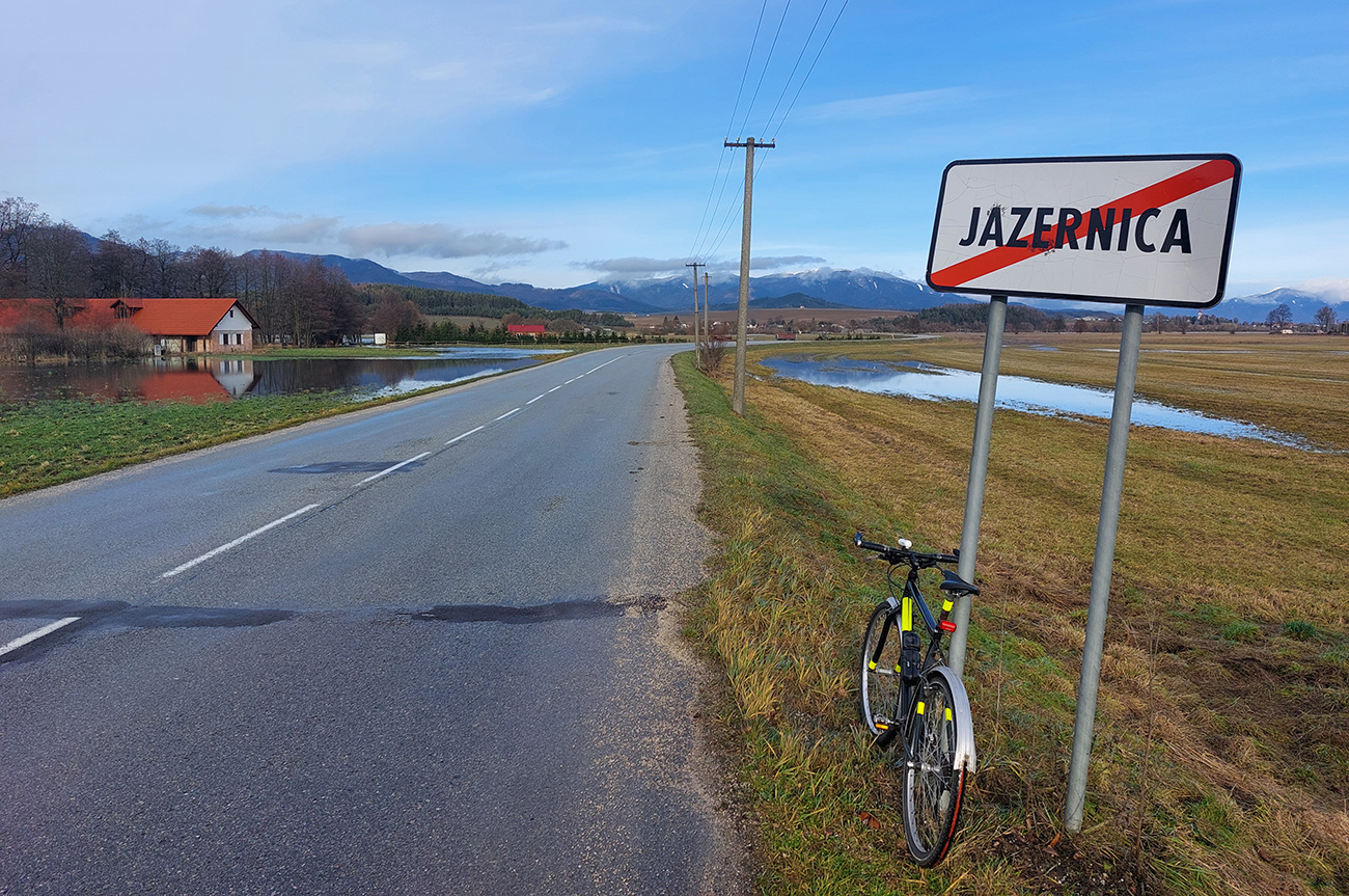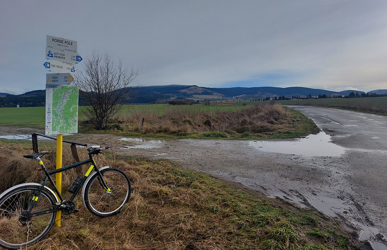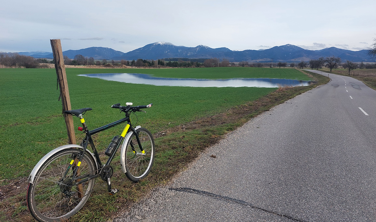 Doslova – lebo na krajinu podobnú tej fínskej sa zmenila Turčianska kotlina po koncoročných a novoročných lejakoch. Keď dočasne prestalo čliapať a nočný vietor pred ďalším frontom aspoň trochu osušil cesty, vytiahol som zimák, šmaril ho do vlaku a davaj! Sa mu chudákovi ani nesnívalo, že si na staré kolená spraví kilometrický osobák, lebo nepamätám, že by som na ňom takmer stovku dal niekedy. Ostatných 20 rokov isto nie. Tak sme si teda užili s deduškom. Lebo v podhoriach blato, niekde v stredných výškach tiež, potom vyššie kašan, do Tatier sa mi trepať nechcelo a nosiť lyže na hrbe niekam za snehom tiež nie. Takže zámer bol pojazdiť bočné a cezpoľné hornoturčianske asfaltky, z ktorých už dažde isto zmyli aj posledné blato, čo na nich ostalo po jesenných poľných prácach. Aj pofotiť som chcel, ako sa Turiec pekne rozlieva, čo inak robí pravidelne, ale v marci. No, zvykajme si...