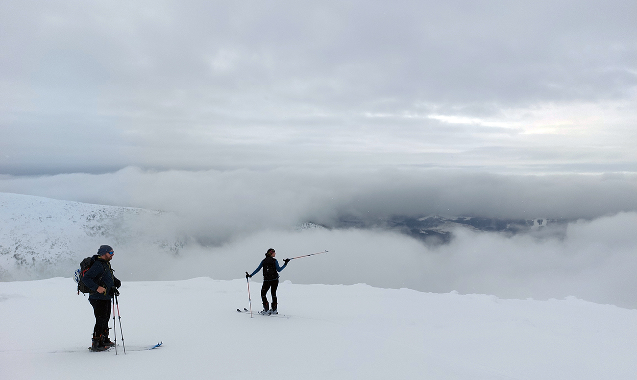Prišla neodolateľná ponuka, že Ďumbier z Trangošky je istota! Ale že len v nedeľu, lebo v sobotu bude hnusne. Bolo síce aj v nedeľu, keď sa Červený Šíp za vytrvalého sprchovania bystro driapal hore dolinou, ale keď ulovil predposledné miesto na zákrute, tak bolo všetko oukej, lebo sporivá slovenská dušička od radosti zapišťala, že nemusí platiť parkovné. A skočila lyžiarkami rovno do poštrkovanej mláky pod Zázvorom. Ale od Zázvoru už sa dalo! Skoro ako od parkoviska, a to sa teraz cení! Pásy začvachtali v mokrom firne, zaradili sa do šóry podobne postihnutých a išlo sa. A neveriacky sa krútilo hlavami, koľké snehy tam všade naokolo ležia. A prestalo aj chčať, zato začalo nebyť vidno, tak výhľady len do spodných partií známych podďumbierskych zjazdoviek vlčej a Halašovej a ktovie ako sa to tam všetko volá. Ale že to sa cestou nazad isto zlepší.