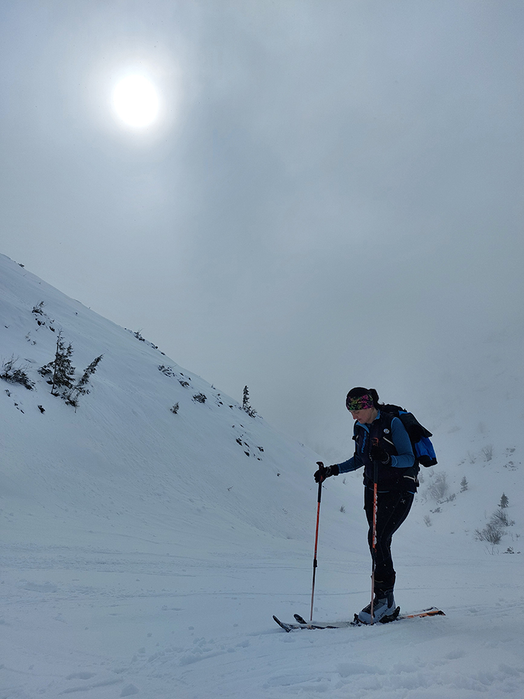 Tak sme smerom dole triafali len od tyče k tyči, ale prekvapivo dobrá lyžba. Po rozchodenom, ale rovnom. A keď sme si už trúfli vrhnúť sa doprava, trafili sme také dobré sňahy, že sa aj ujúkanie ozvalo.