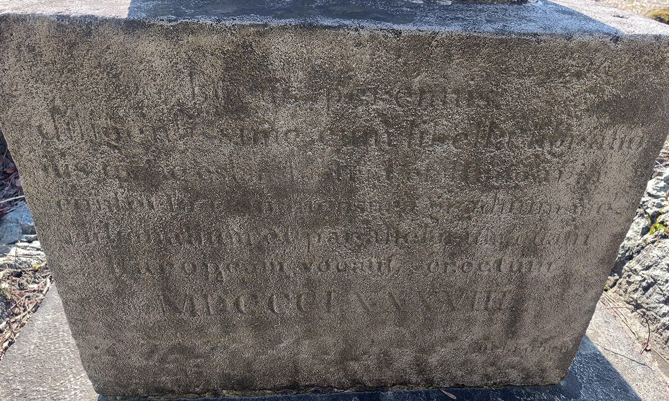 Nie je to jeho pôvodné miesto, bol sem premiestnený (už druhý raz) v máji 1942, ako to hlási nápis na podstavci. Starší, latinský nápis hovorí: „Hlavný pevný bod presnej nivelácie vykonanej v Rakúsku -Uhorsku v súvislosti s európskym stupňovým poludníkovým a rovnobežkovým meraním. Zriadený v roku 1888.“