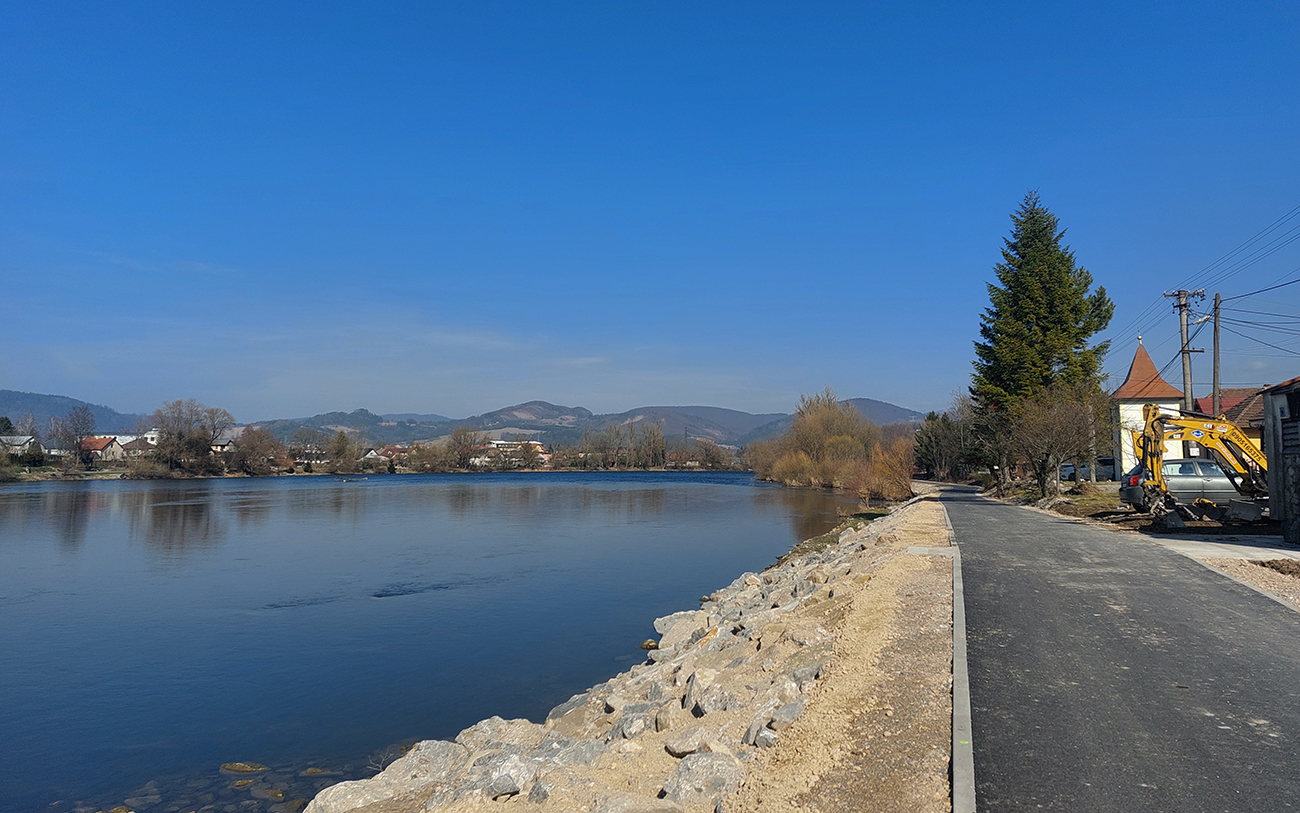 Dôvod mám aj ten, že len nedávno spojazdnili nový úsek cyklotrasy z Nezbudskej Lúčky do Varína, takže vodné dielo sa dá obísť komplet po cyklotrasách, idem vyskúšať. Takže najprv vynovený mostík cez Váh. Od neho cyklochodník po pravom brehu fasa, len slovenská technomaniacka klasika, absolútne necitlivá ku prírode – padlo niekoľko stoviek metrov brehových porastov. Namiesto nich šutrami spevnený breh. Sme proste nepoučiteľne hlúpi.