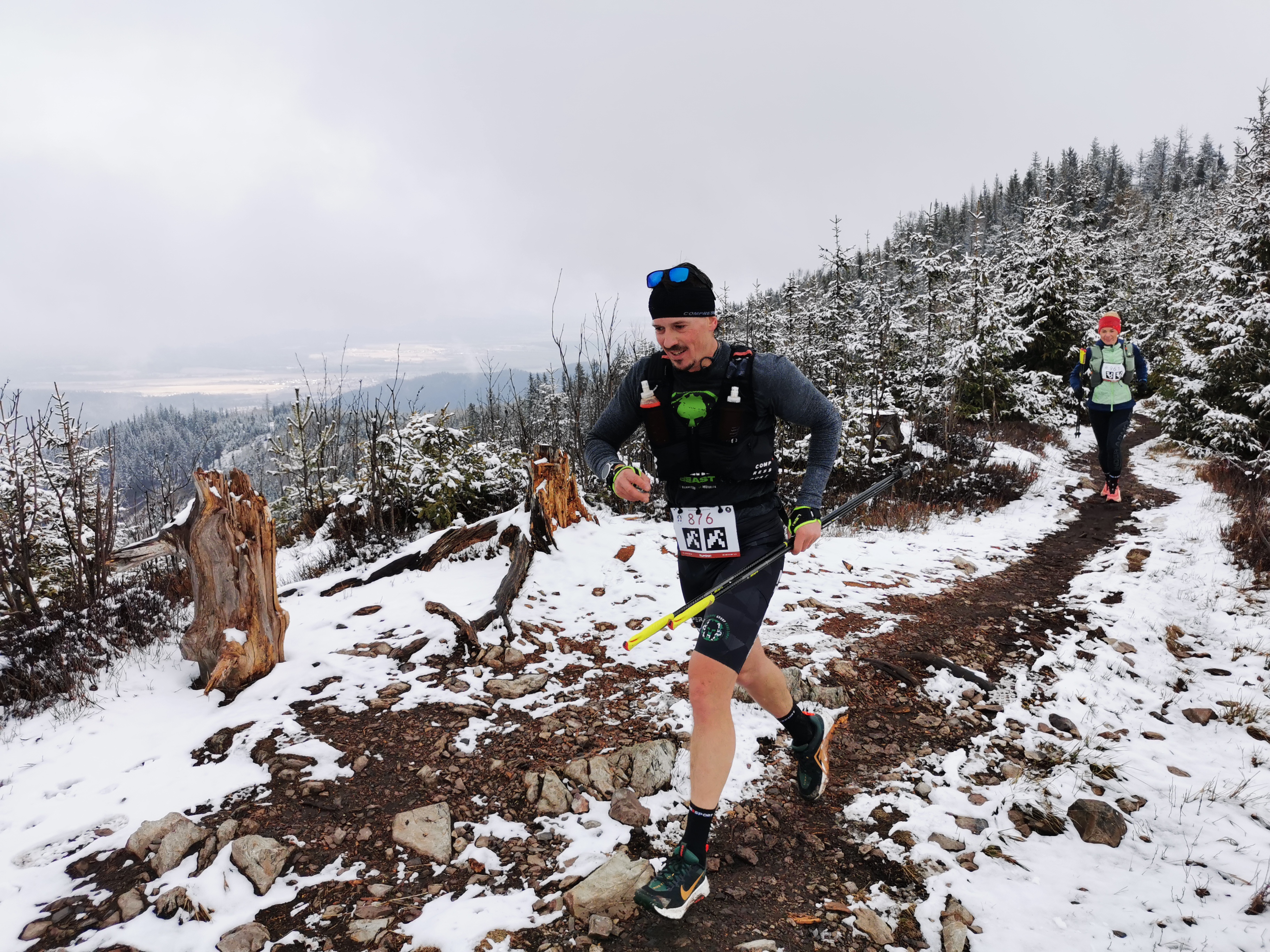 Posvietime si ale bližšie na dve najdlhšie trate, kde do cieľa pribehlo spolu vyše 410 bežcov. Veľmi slušné číslo. Obidve trate viedli hrebeňom Kozích chrbrov cez ich najvyšší bod Kozí kameň. Počasie tento raz neponúklo výhľady na Tatry ako minulý rok, ale tak aspoň bolo príjemne chladno a nočná !miestami snehová) prehánka zariadila, že sa neprášilo.
