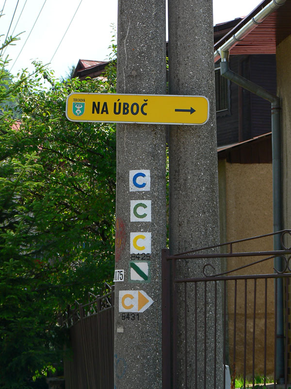 Na úvod je to jednoduché – za hasičmi doprava do ulice Na Úboč, na stĺpe je názov ulice aj céčka zo štyri – moje je to oranžové (č. 8431), zároveň náučný chodník. Za posledným domom doľava, radím 22/32 a daváj po spádnici na kopec. Cesta v úvoze, rozbitá, no pekný začiatok na odplašenie cykloceprov :-)