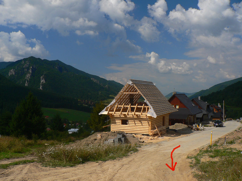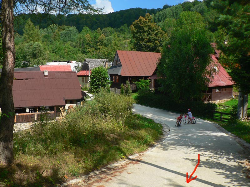 V osade staré drevenice a nová betónová (!!!) cesta. Vysvetlenie za rohom – stádo nových „chalúpok“, o akých sa Jurajovi J. ani nesnívalo, tak cestu potiahli aj k starým chalupám. Tu je jediná dilema na celej trase – pomedzi novostavby ešte nezaznačili cyklotrasu. Mapa pomohla a už sa štverám k osade Kýčera.