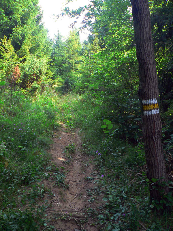 Zdanie neklamalo, hore okolo smerovníka borievkový prales a len obmedzené pohľady na juh na Fatru a na západ na Kysuce. Zato zjazd nazad stojí za tú námahu! Strmý, ale nie brutálny singlík po spádnici, pekne technicky hravý, ani si netreba veľakrát gate o zadné koleso drať. Len jeden či dva spadnuté stromy krížom. Iba nesmie ísť nik oproti :-) Podľa stôp najmä miestni motorkári...