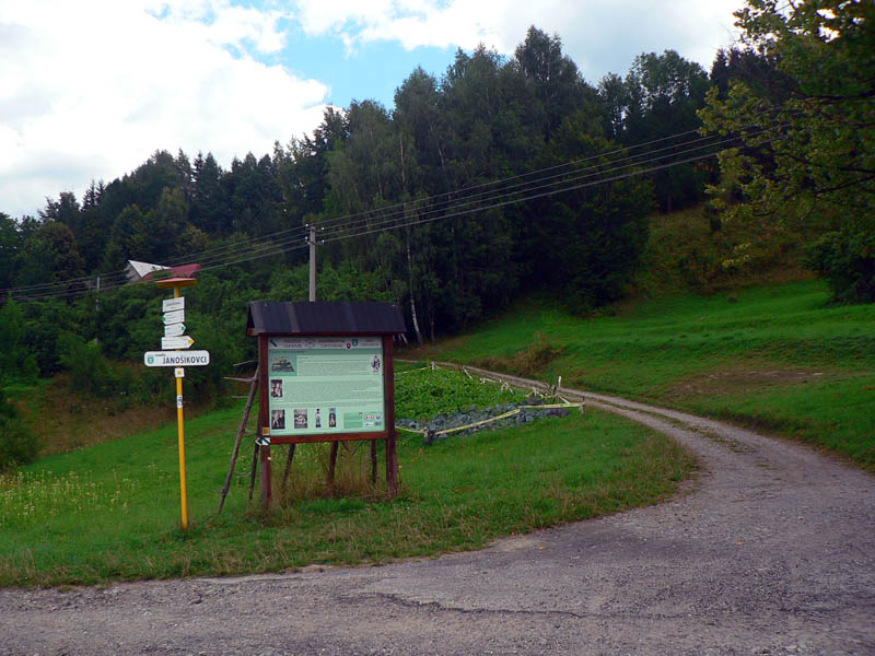 Znovu na Poľanách, odtiaľ až do osady Šípková pohodová štrková cesta (miestami prastarý asfalt), ako stvorená na rodinné výlety :-) A s peknými výhľadmi, najmä na protisvah doliny, kade sa budem vracať. Cestou osada, ktorú si domáci akosi nevedia správne označiť: U Jánošov či Jánošíkovci? Hlavne že je jasné o koho tu ide :-)