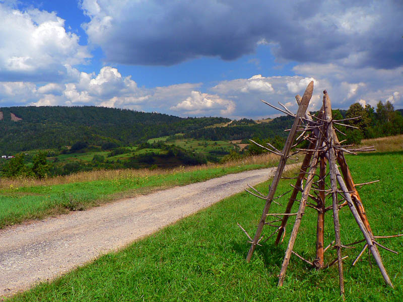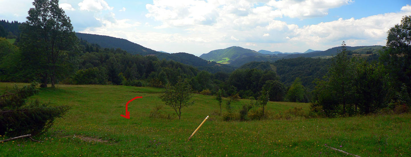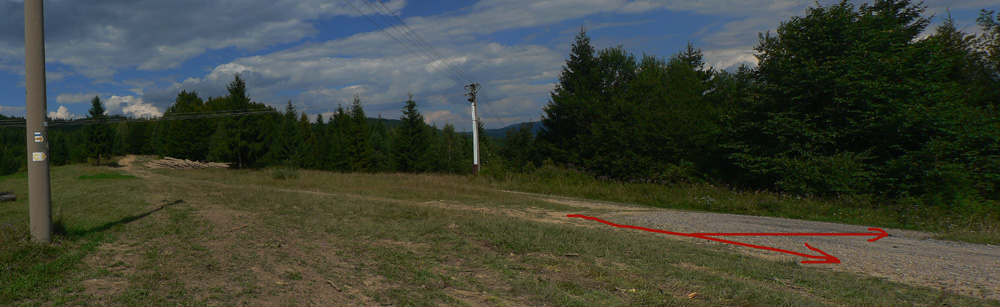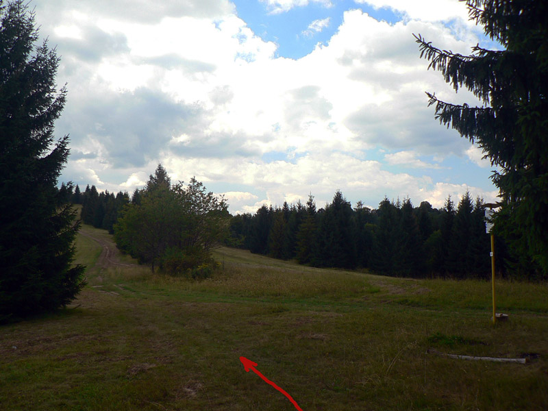 Ide sa. To ešte neviem že tu sranda rýchlo skončí :-) Lúky síce hej, ale dávno nekosené, s trávou po pás, cesta len zarastený úvoz. Cestou dve romantikuš stodoly ako orientačný bod, lebo značka nikde. Vyššie lepšie, tráva kratšia, aj stĺpiky so značkami, ale po napojení na bežkársku cestu (zároveň modrá cyklotrasa) jeden polom za druhým. A poriadne staré, lebo obchádzky sú poriadne prechodené. Sem asi veľa turistov nezablúdi, tak načo by to domáci upratovali? Viac prenášam ako jazdím, ale už sa vynáram pod Kýčerou. Pauzička, treba vymotať trávu z prevodov :-)